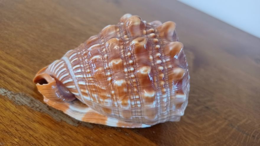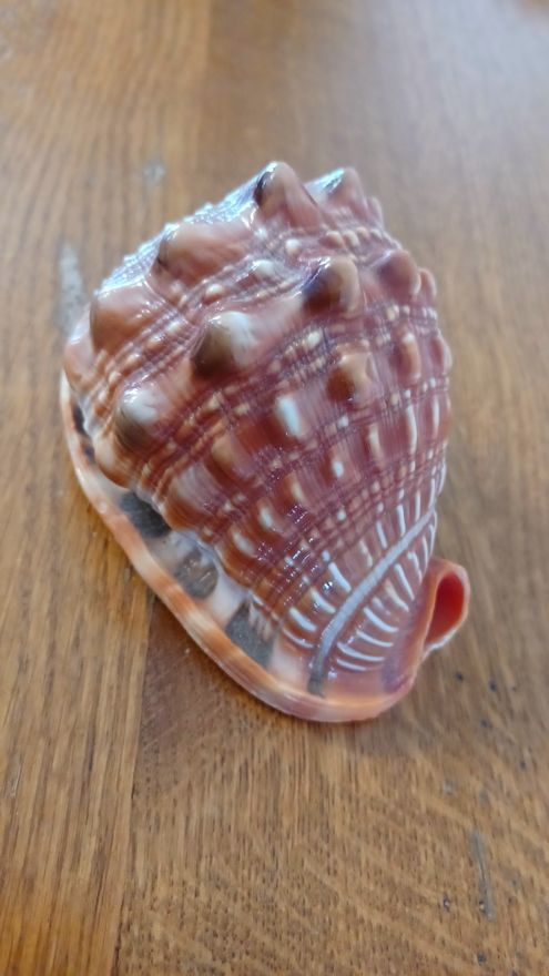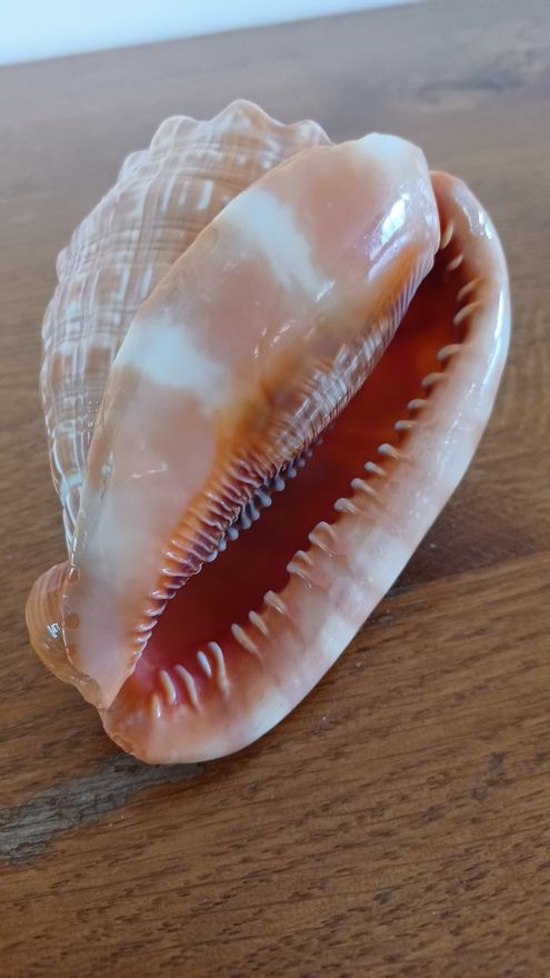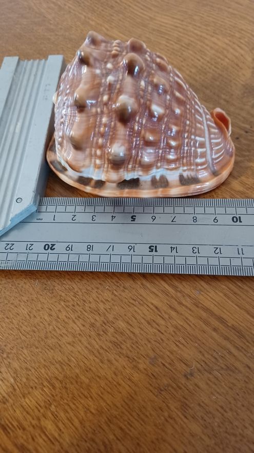 Appelé aussi casque gueule de taureau ou encore Cassis Rufa. C'est une espèce protégée, on n'en trouve donc peu sur le marché. Coquillage de collection mais peu servir aussi de décoration dans une salle de bain.