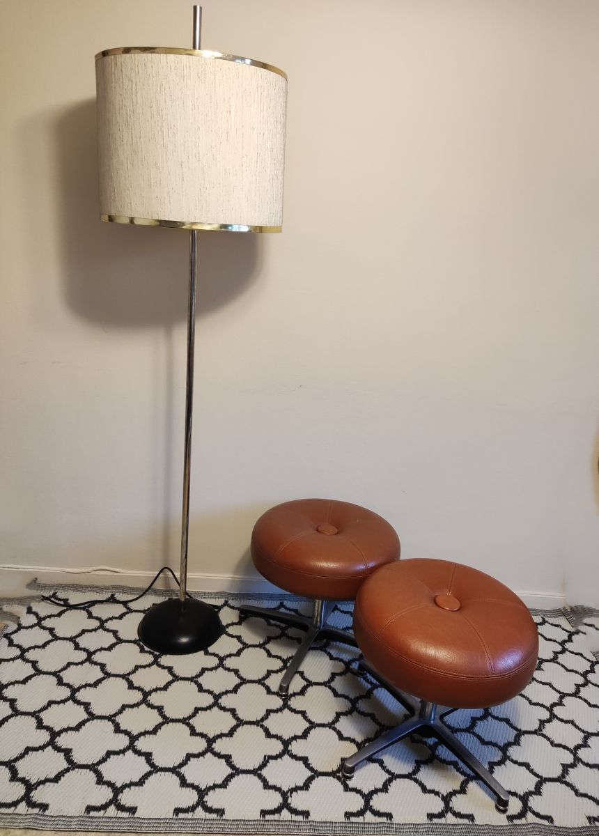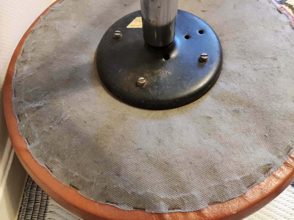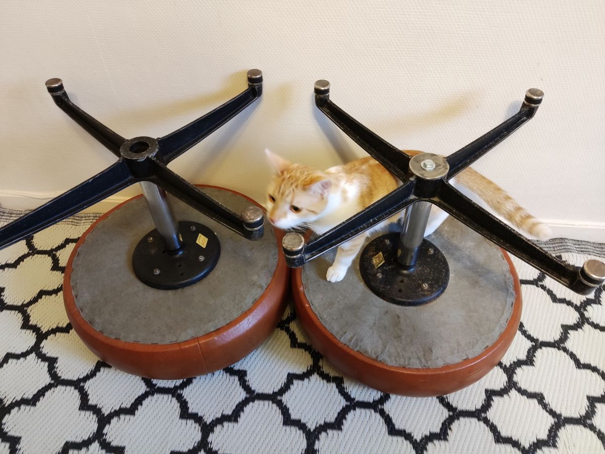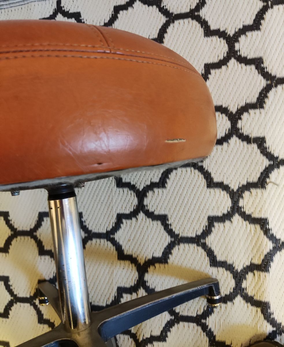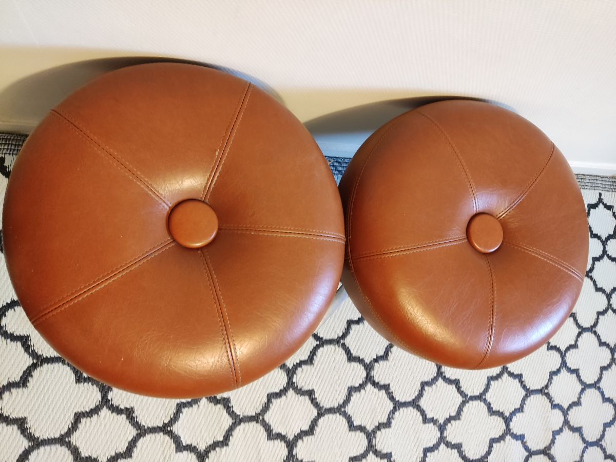 lot de 2 tabourets bas rotatifs en simili cuir de marque Mirima, marron non télescopiques, 1 accroc voir photo, très bonne assise