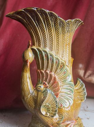 Très beau vase paonne et son paonneau