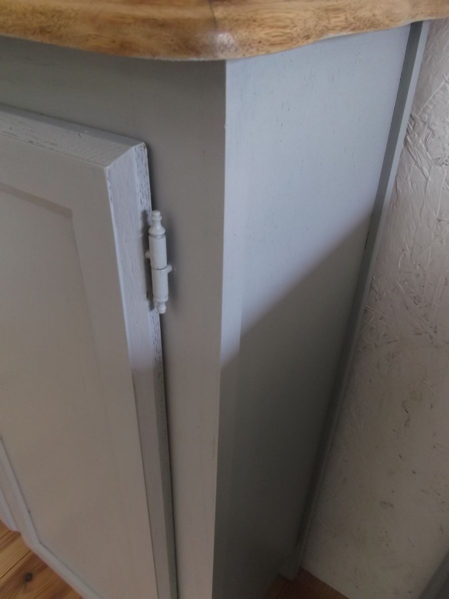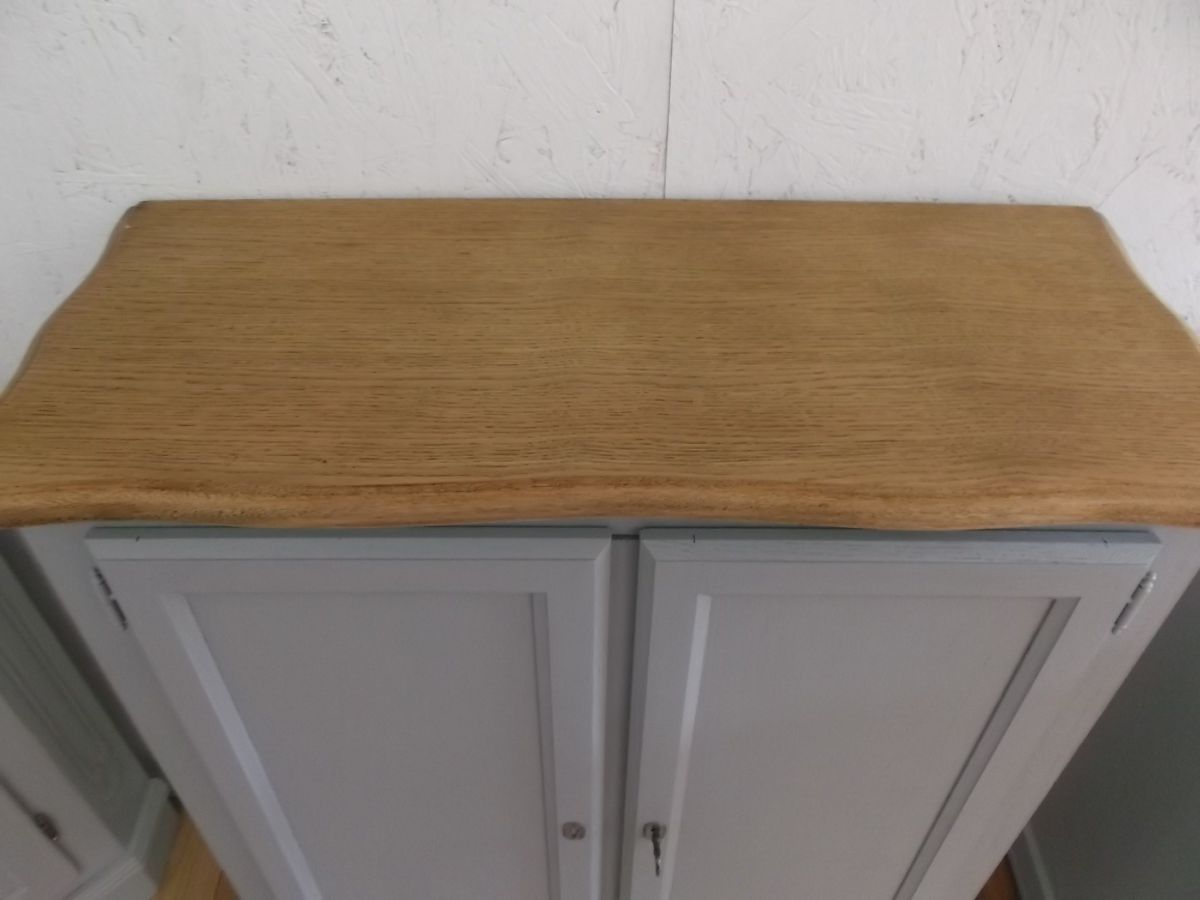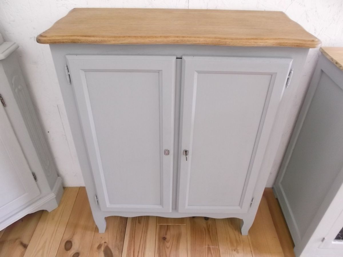 Meuble d 'appoint, de couleur gris, plateau brut verni, chêne, 2 étagéres amovibles, fermeture à clef. Intemporel, il s 'intégrera dans une déco, chic, et raffinée.