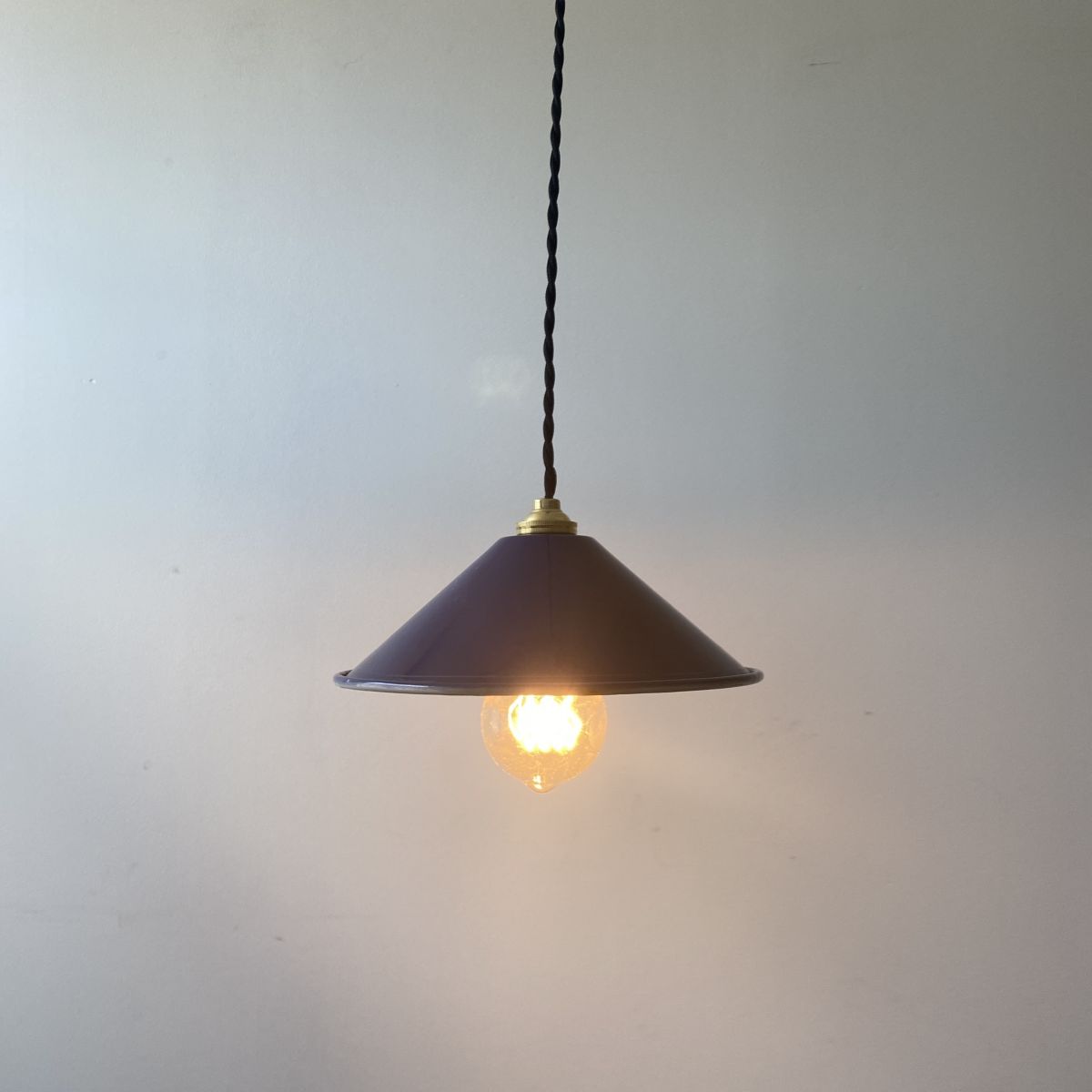 L’électricité a été refaite avec douille à baïonnette en laiton (Ampoules B22). Branchement par domino. Fil noir en tissu tressé et rosace de fixation en porcelaine.
