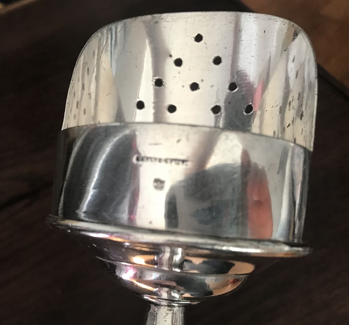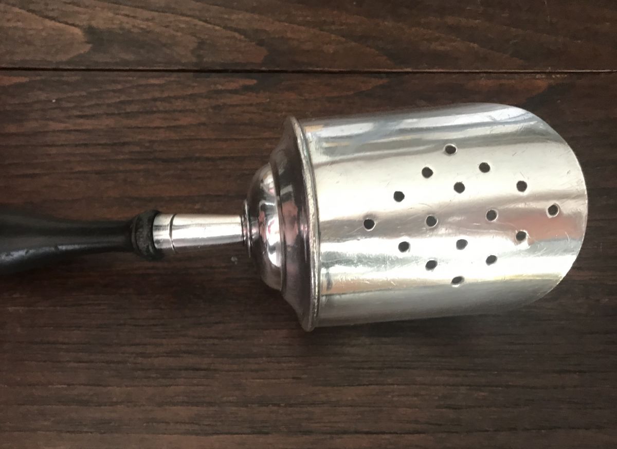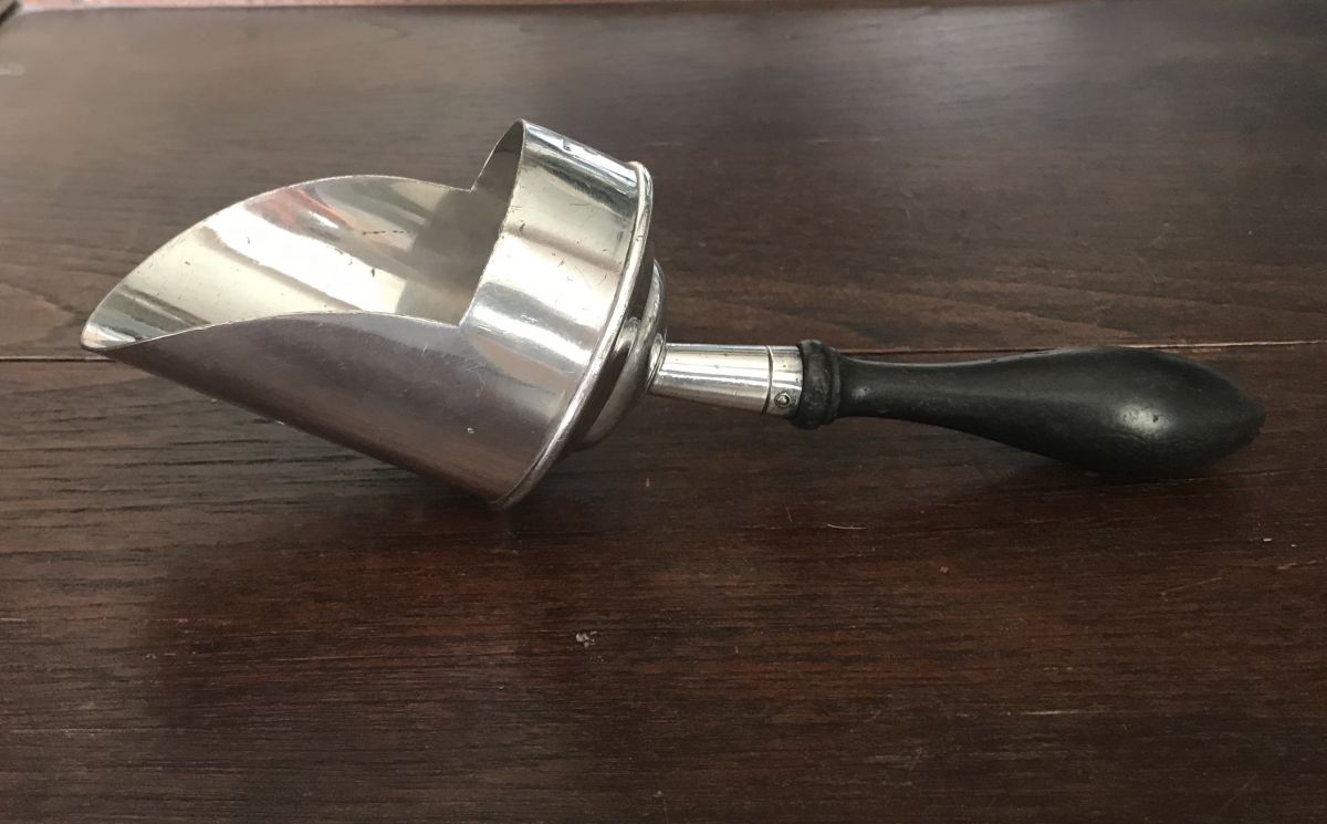 Pelle à glace de bar , ancienne, en métal argenté anglais et manche bois.