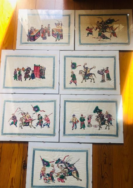 Je vends une collection de sept estampes chinoises, très colorées avec des détails particulièrement fins et un travail très soigné. Celles-ci datent de la fin du 19e siècle.
