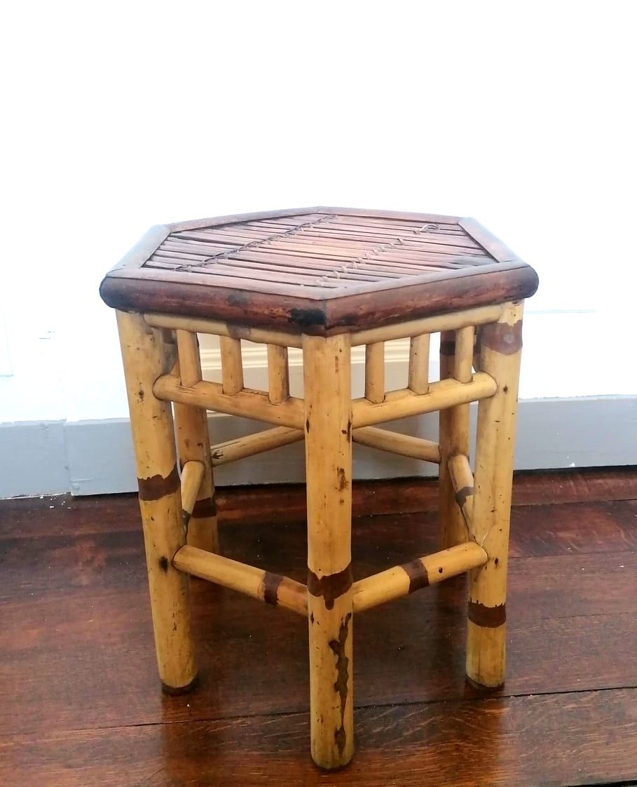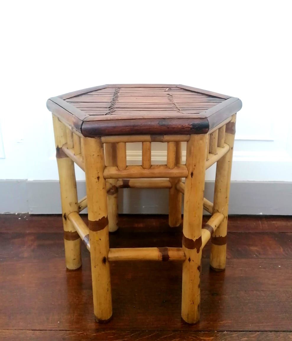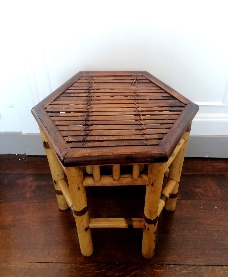 Bambou naturel beige clair avec tâches plus foncés, le plateau a été teint dans une couleur plus foncée qui s'accorde avec les tâches naturelles des pieds. Années 1970.