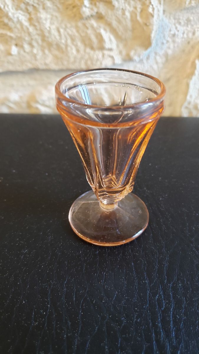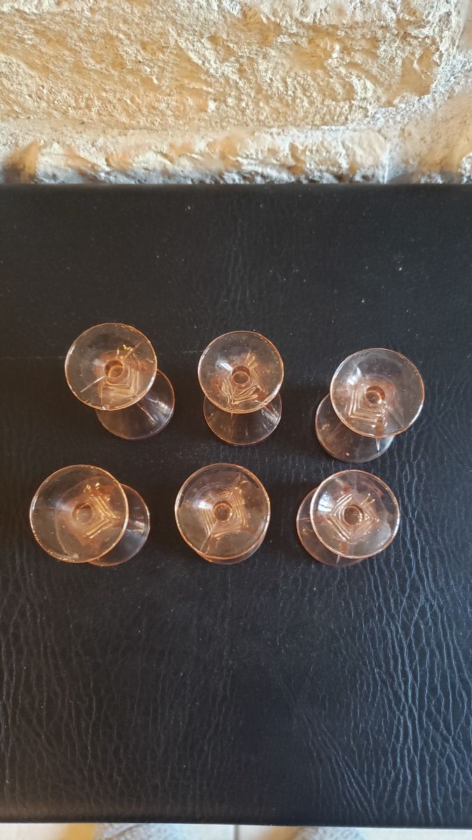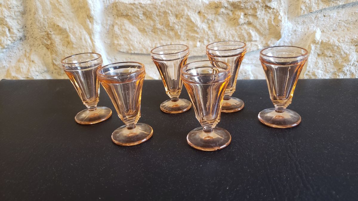6 petits verres roses à liqueur contenance 1 cl début 20ième siècle.