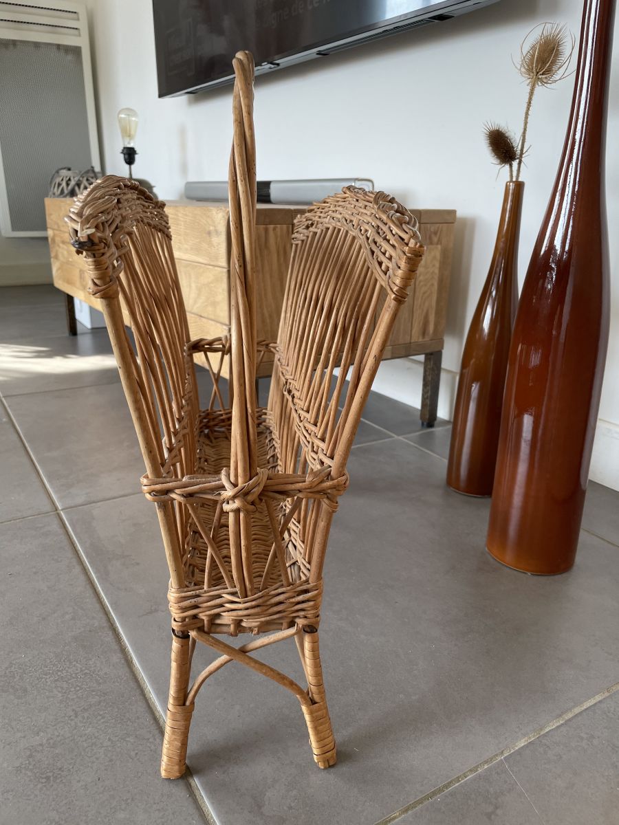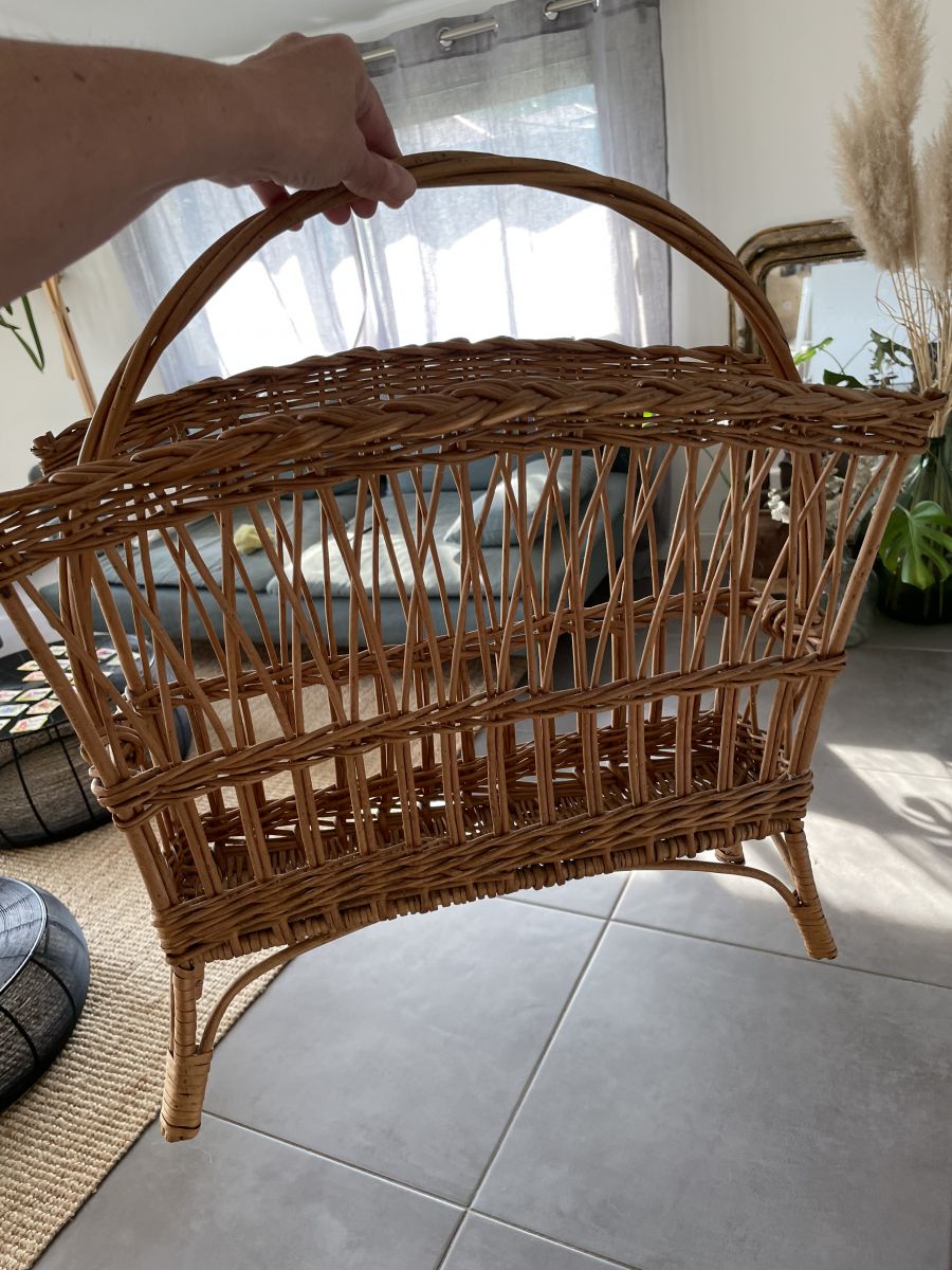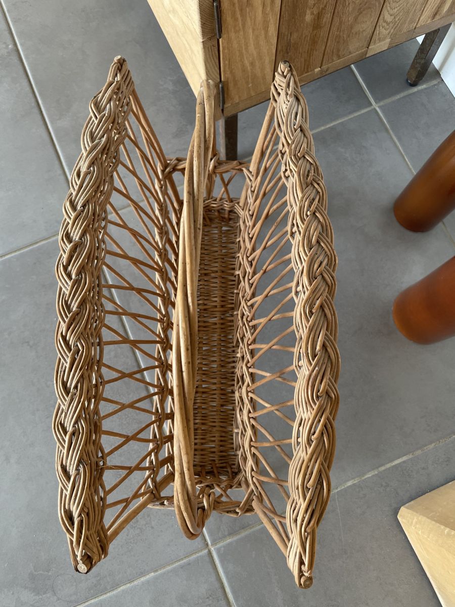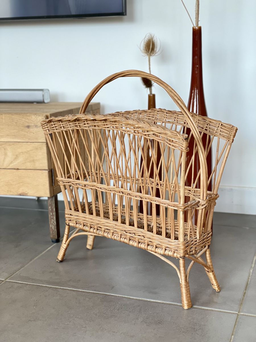 Magnifique porte-revue vintage en osier