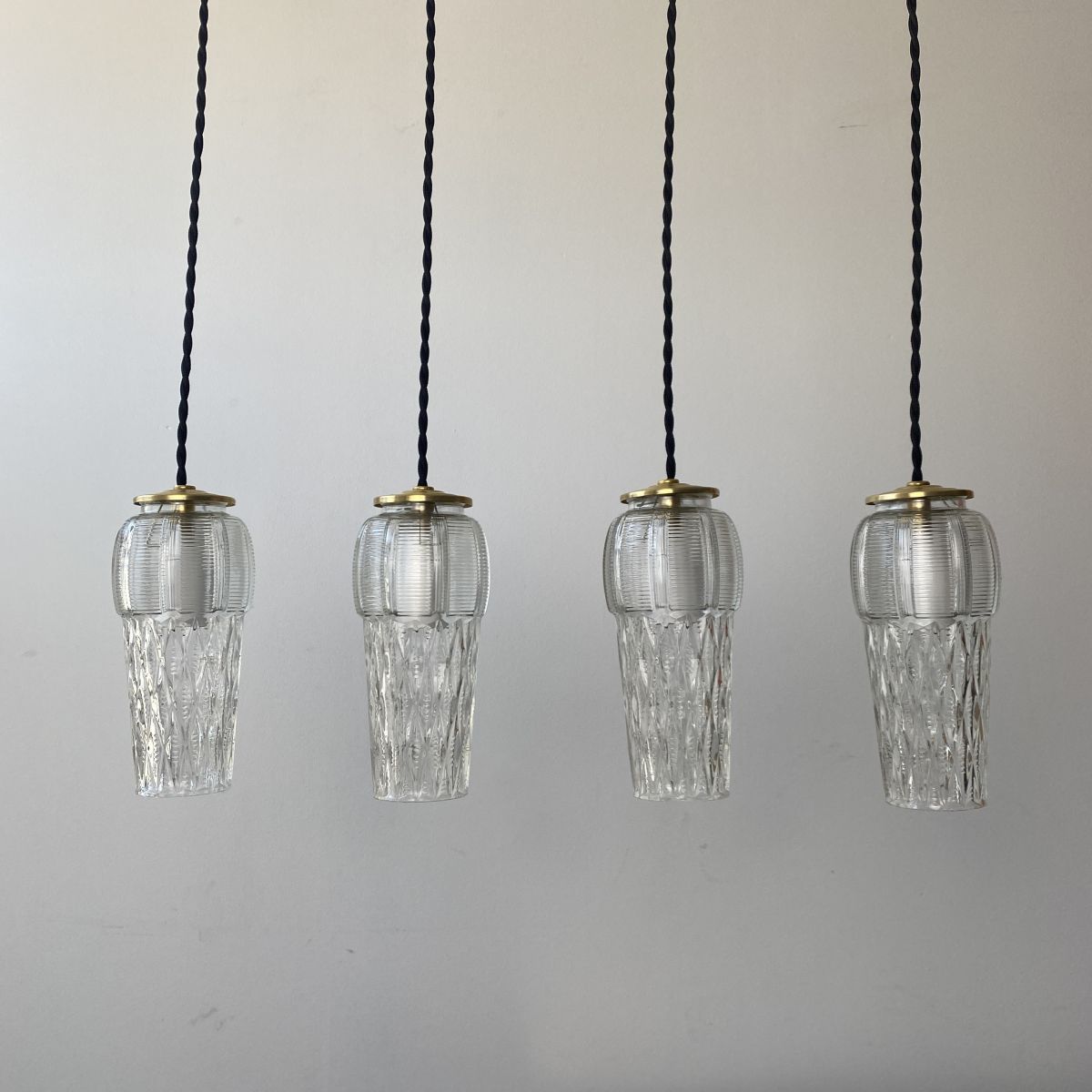 Lot de 4 suspensions en verre moulé. Vintage. Années 1960. En bel état.