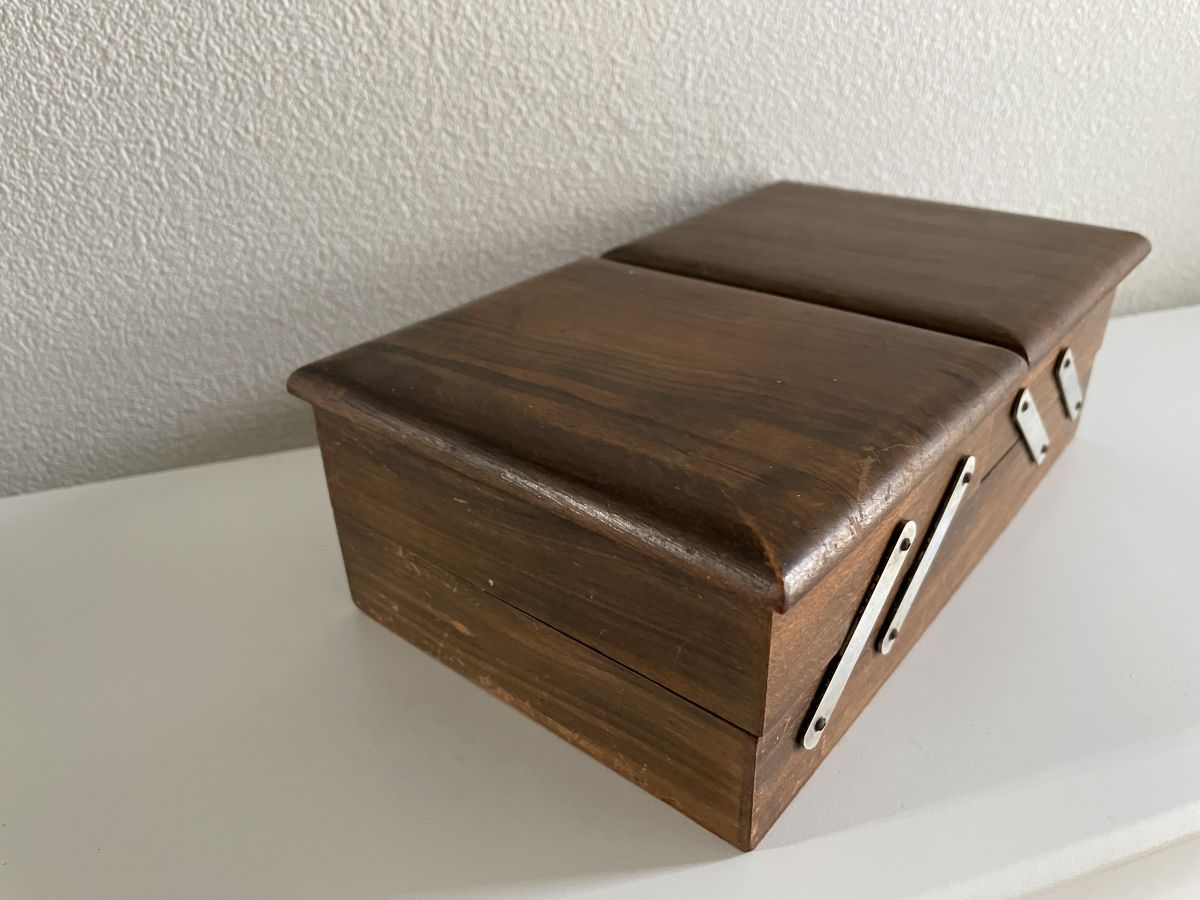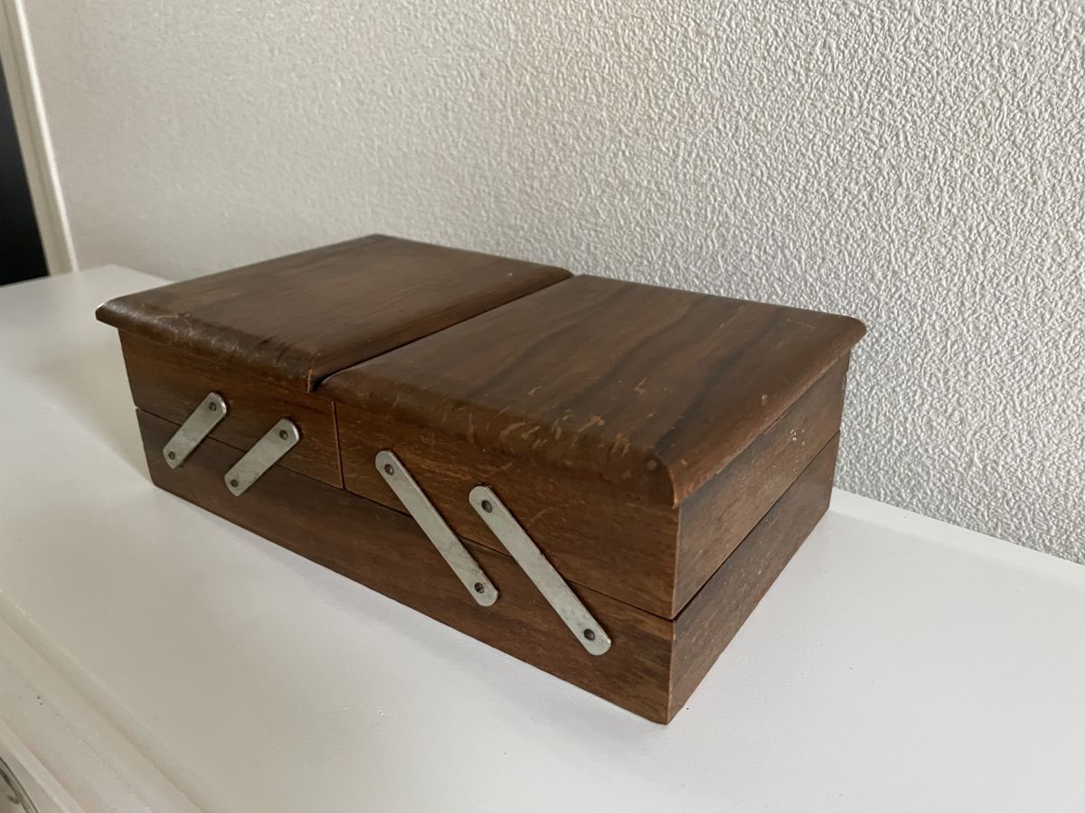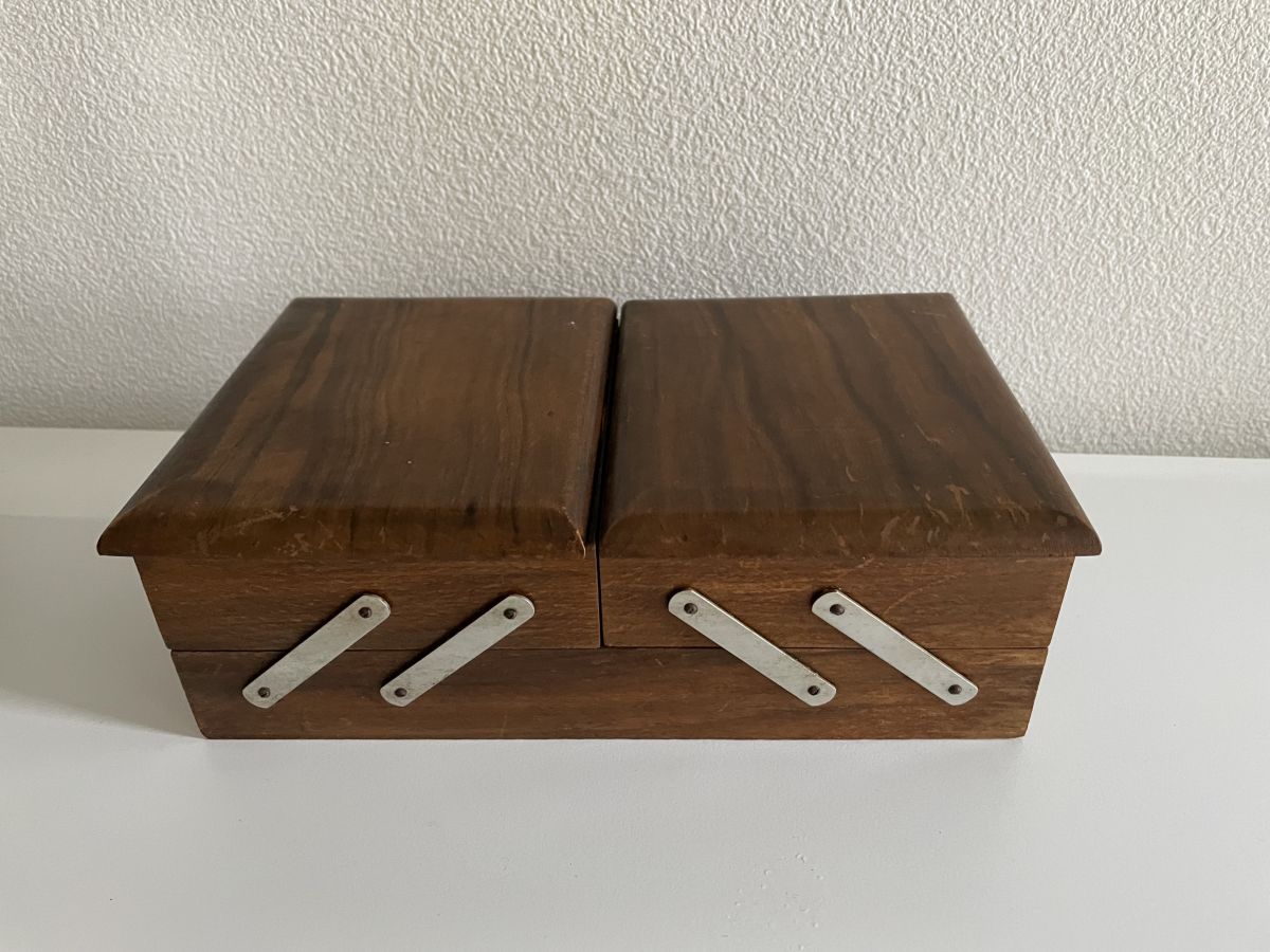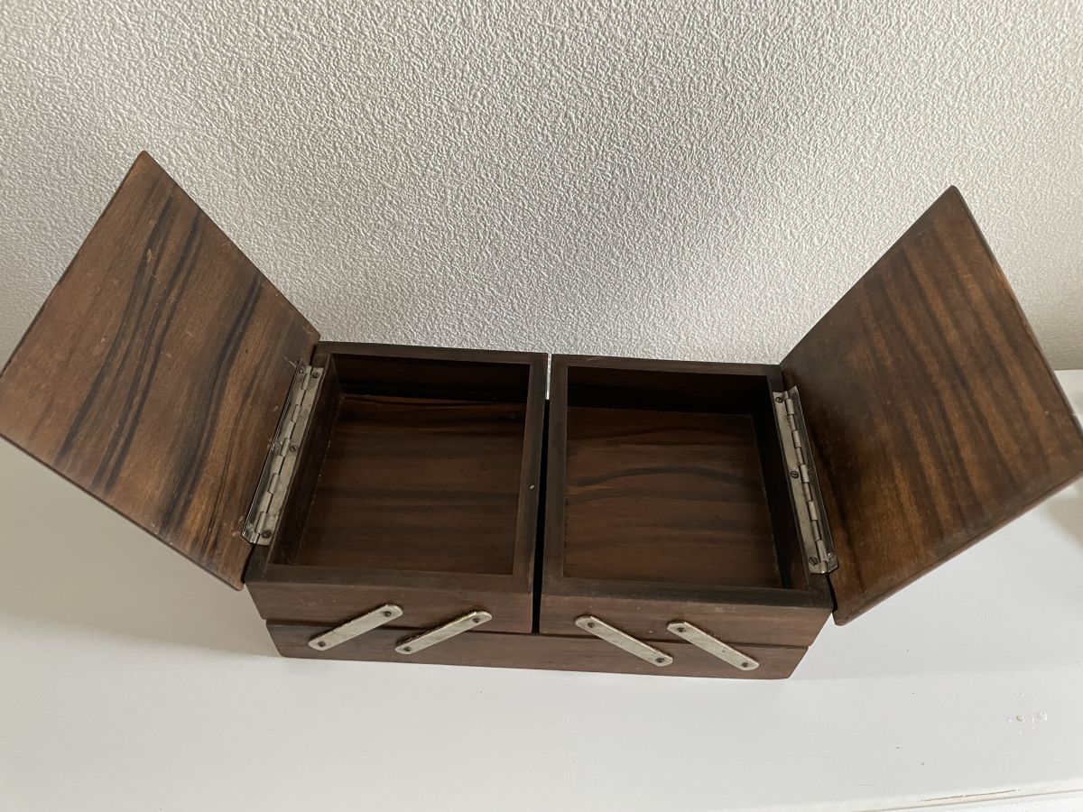 Mignonne petite travailleuse de table comprenant 2 compartiments visible sur la 4ème photo et 1 grand faisant toute la longueur en dessous.