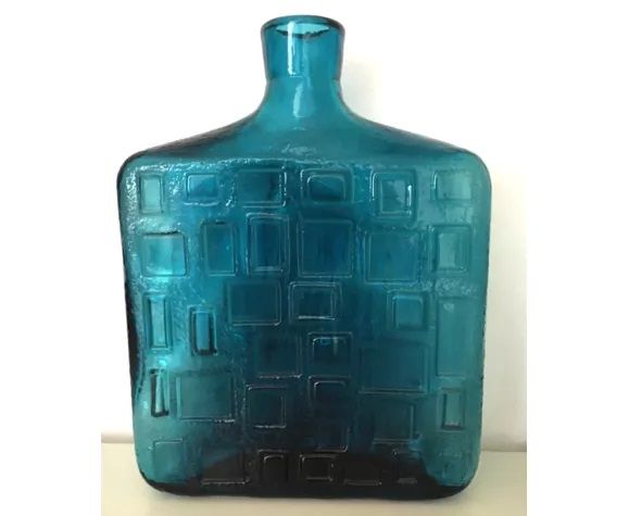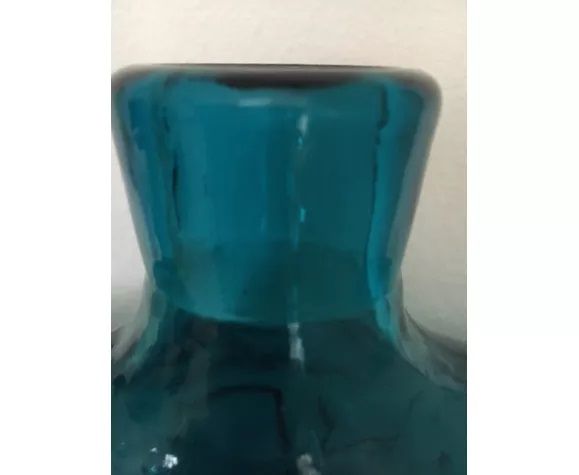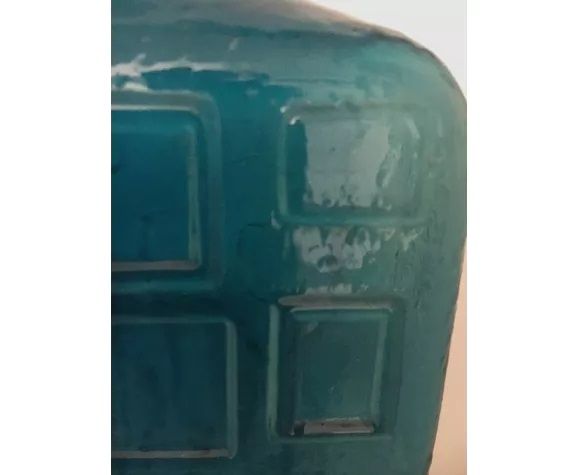 Grand vase design en verre bleu turquoise translucide. Le verre est gravé sur sur sa face et son dos d’élégants motifs géométriques. La forme est sobre et élégante.le col du vase de 3 cms peut contenir 1 à 3 tiges de fleurs.trés bel objet de décoration. Le vase est en excellent état. Aucune fêle, aucun éclat. Le verre est épais et laisse passer la lumière tout en douceur. Largeur 18 cm //hauteur 25 cm// profondeur 5 cm// poids 1, 3 kg. Emballage et livraison soignée via dhl international.