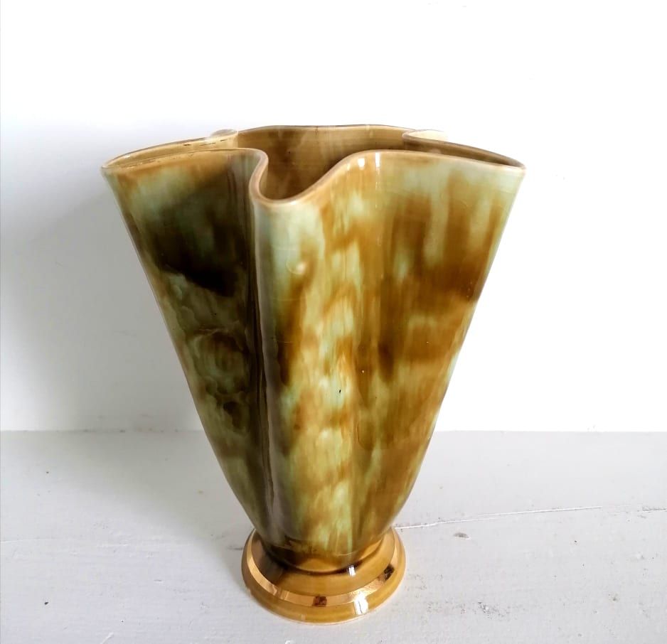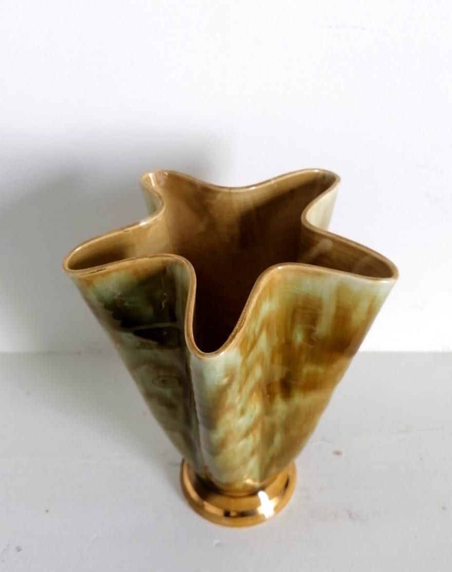 Vase de forme mouchoir en céramique émaillée de couleur moutarde.