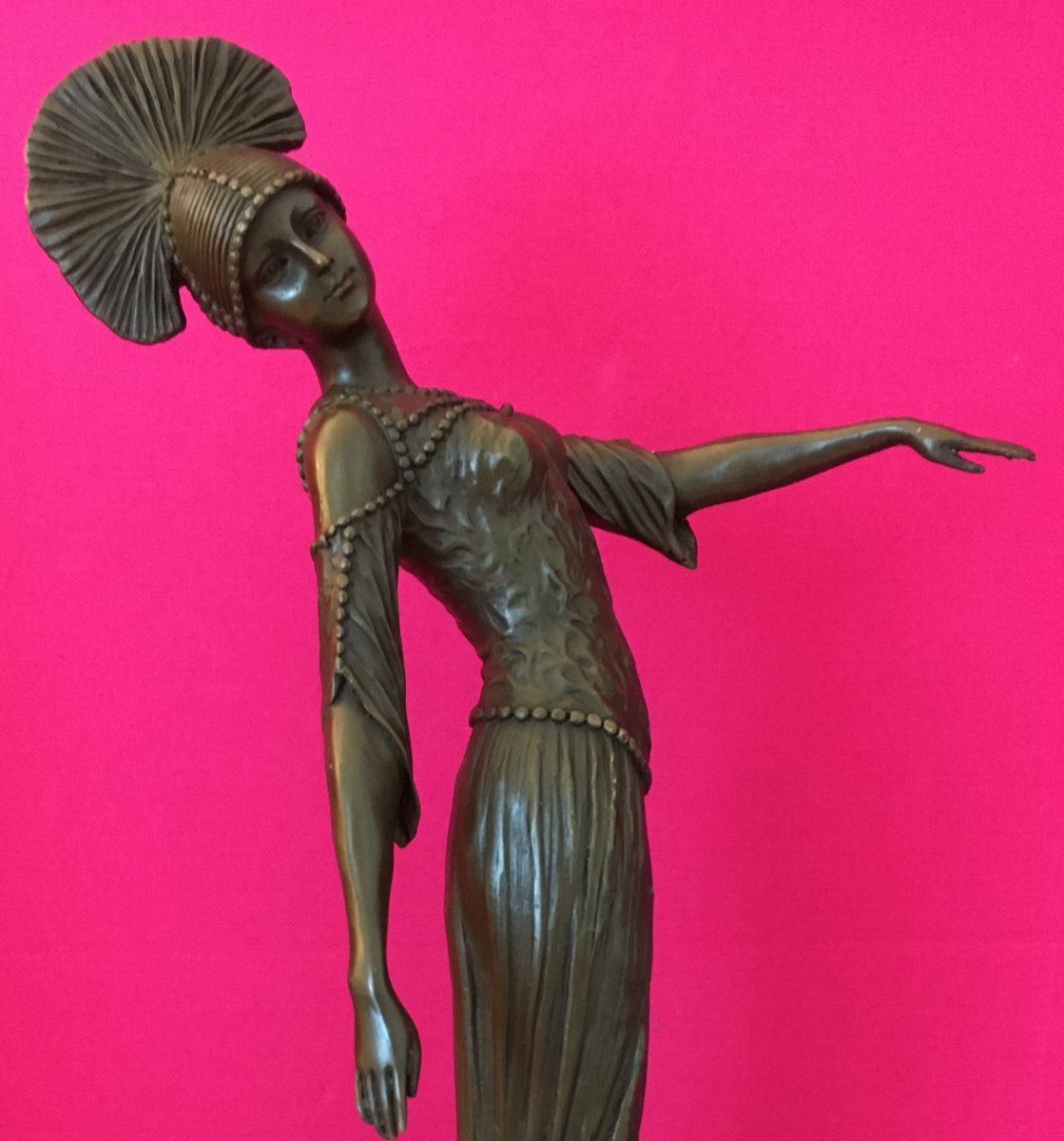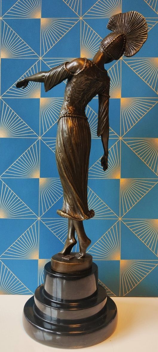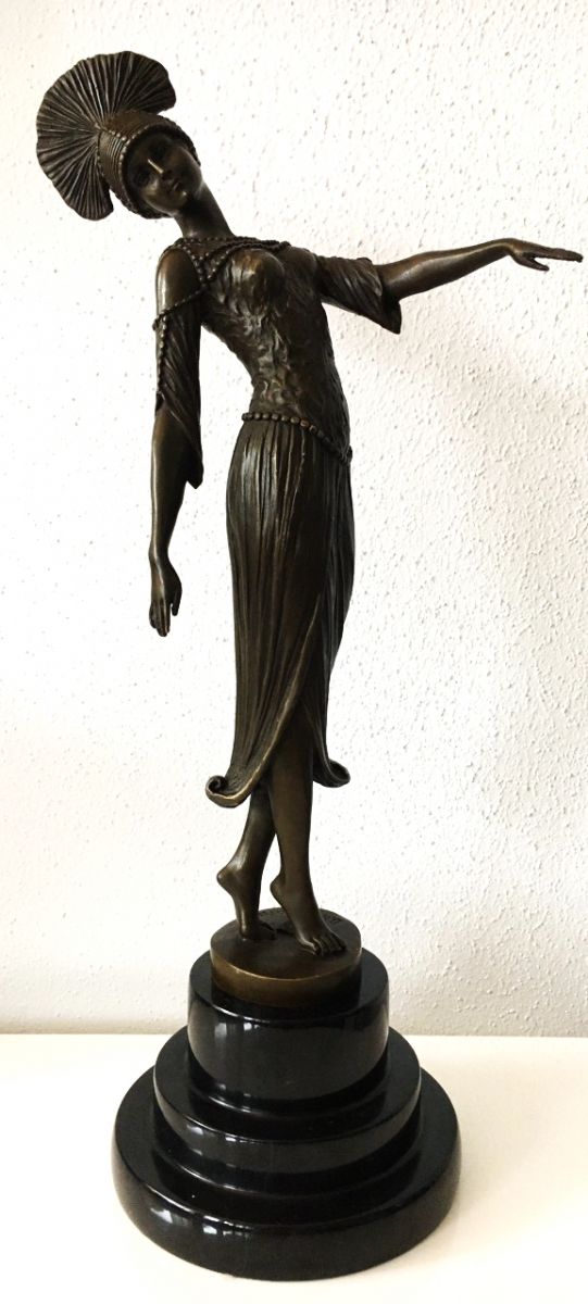 Demetre Chiparus (1886-1947), sculpteur roumain de l‘époque artistique Art déco, a vécu et travaillé à Paris .Chiparus s'est spécialisé dans la représentation de figures féminines exotiques. Beaucoup de ses créations s'inspirent des Ballets russes, très populaires à Paris entre 1917 et 1920. Il s'est également inspiré d'autres personnages et spectacles contemporains.