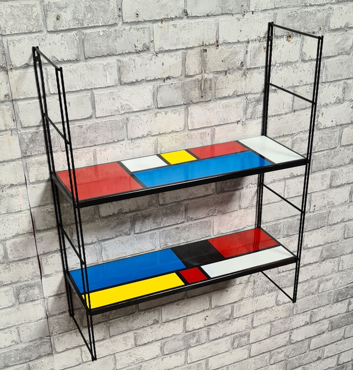Etagere string style piet mondrian montants noir. 48x58x16.