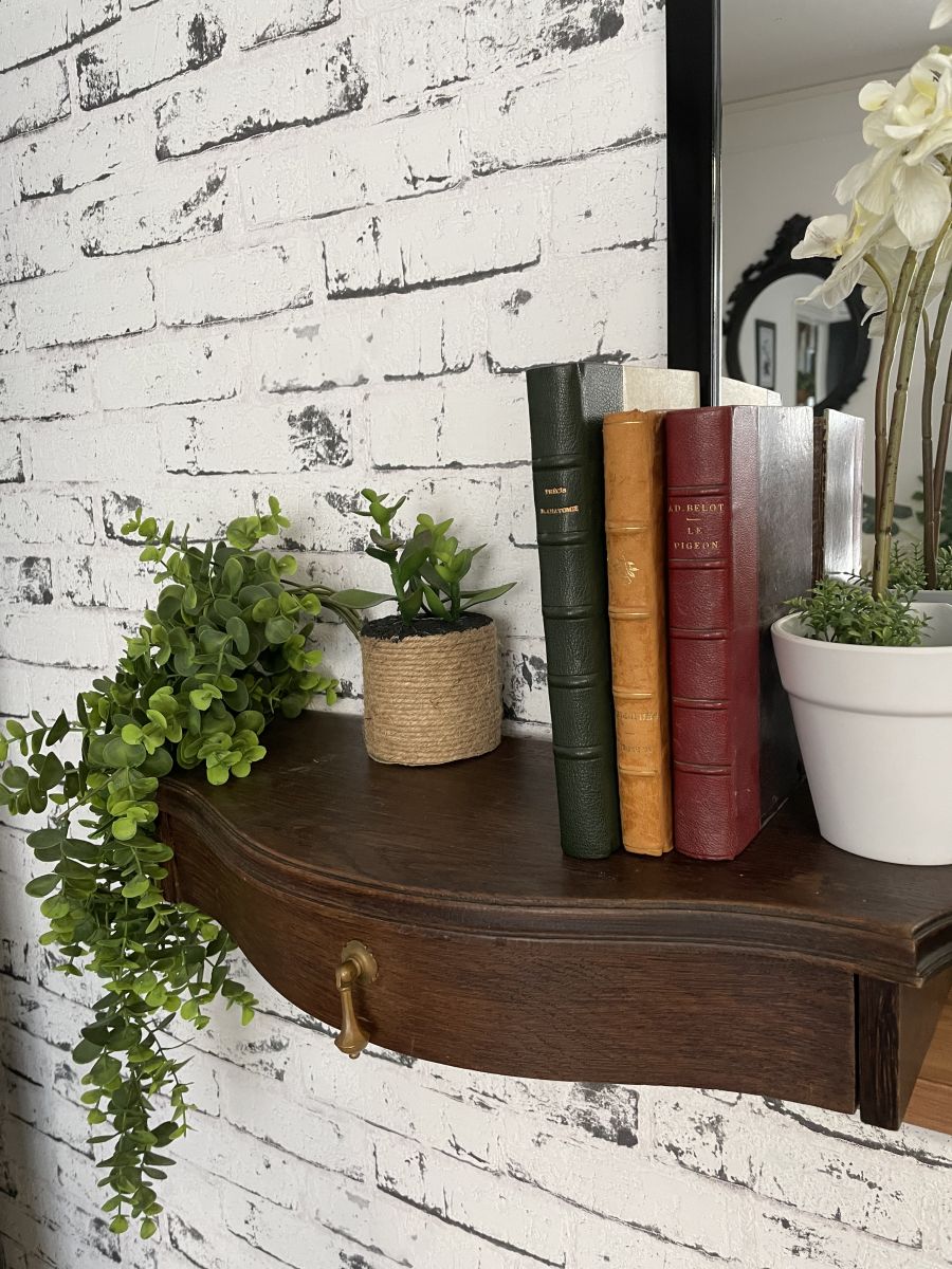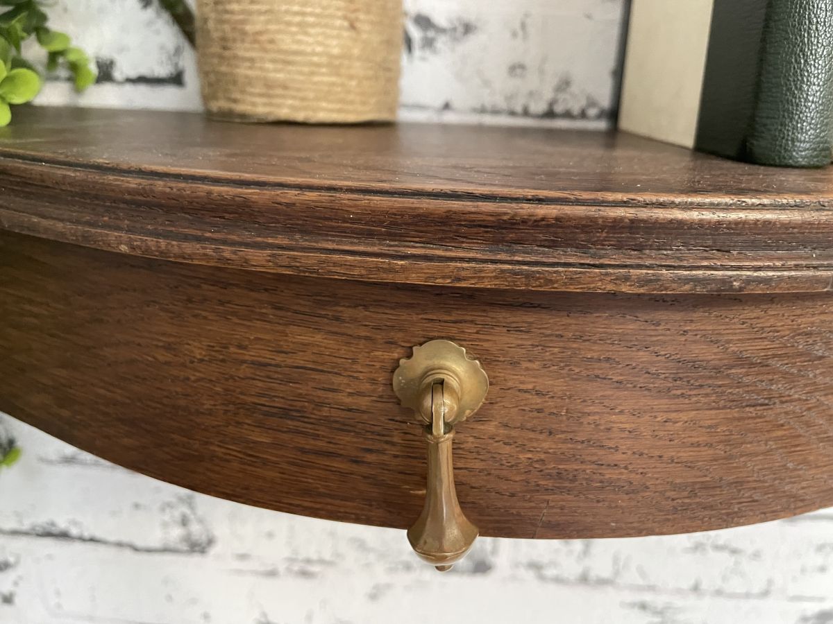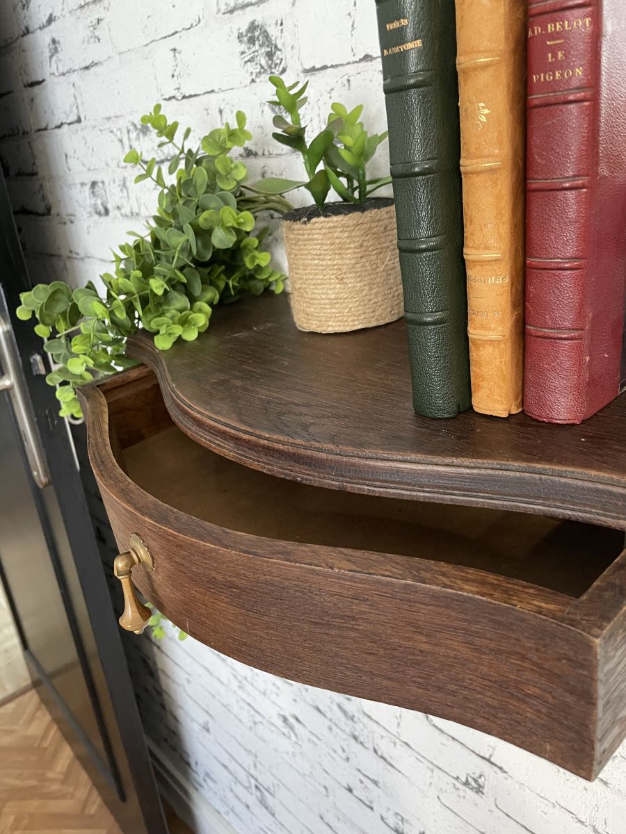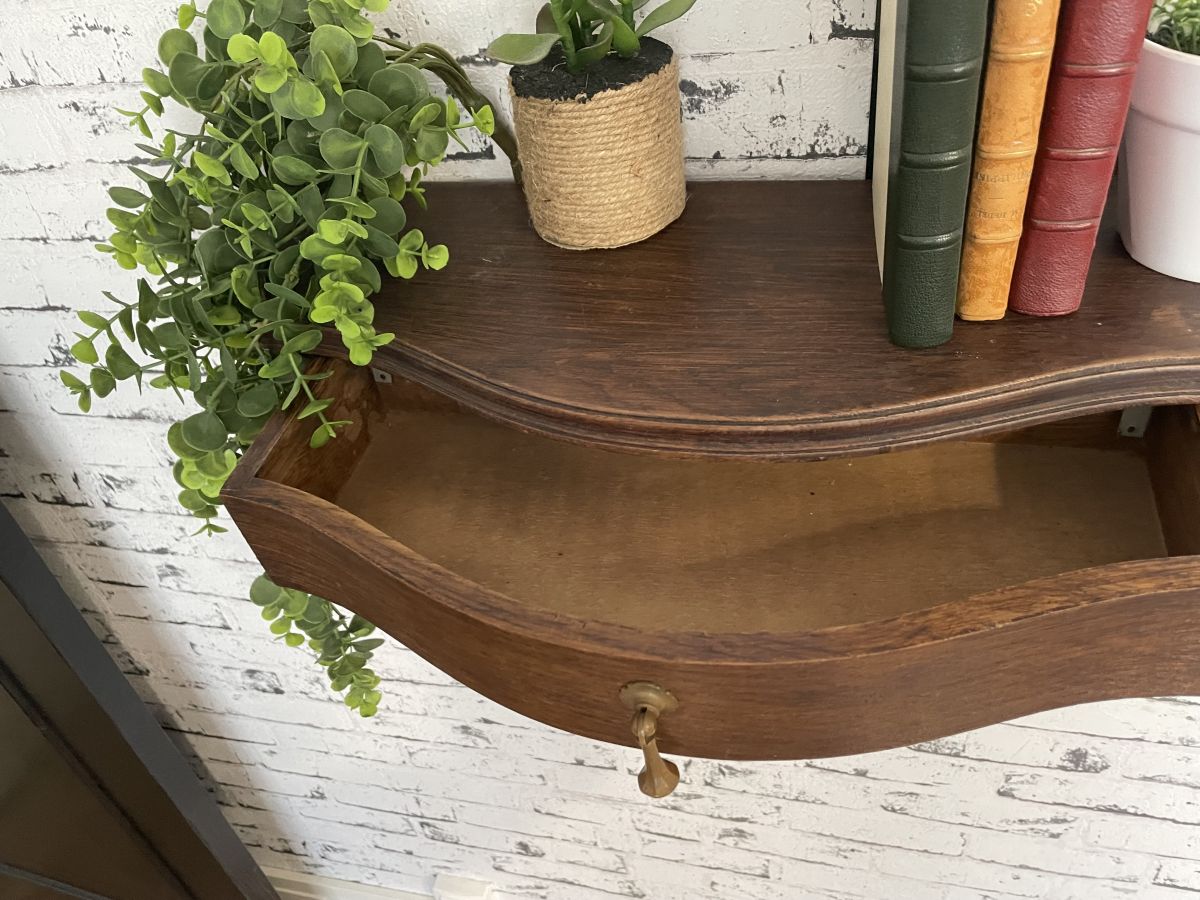 Jolie console / étagère en bois avec tiroir et sa poignée en laiton.
