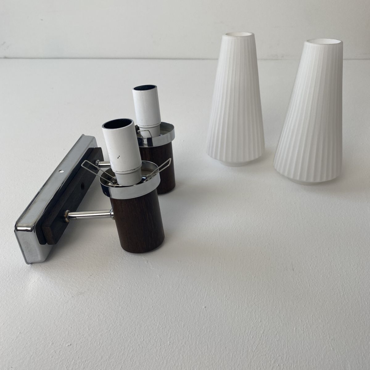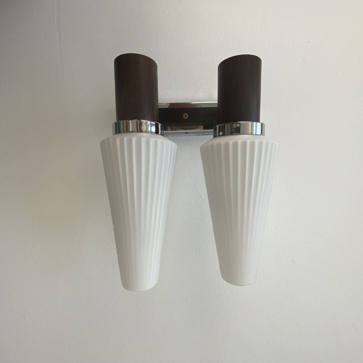 Applique double feu des années 1960 en opaline. Belle lumière.