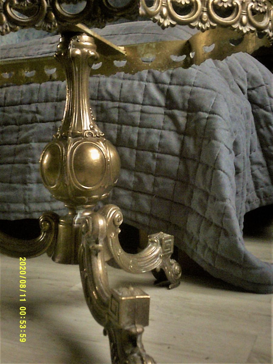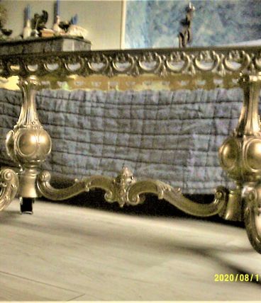 Tour ciselé en laiton et pieds entièrement travaillés. La forme de la table n est pas ovale mais originale. Lourde.