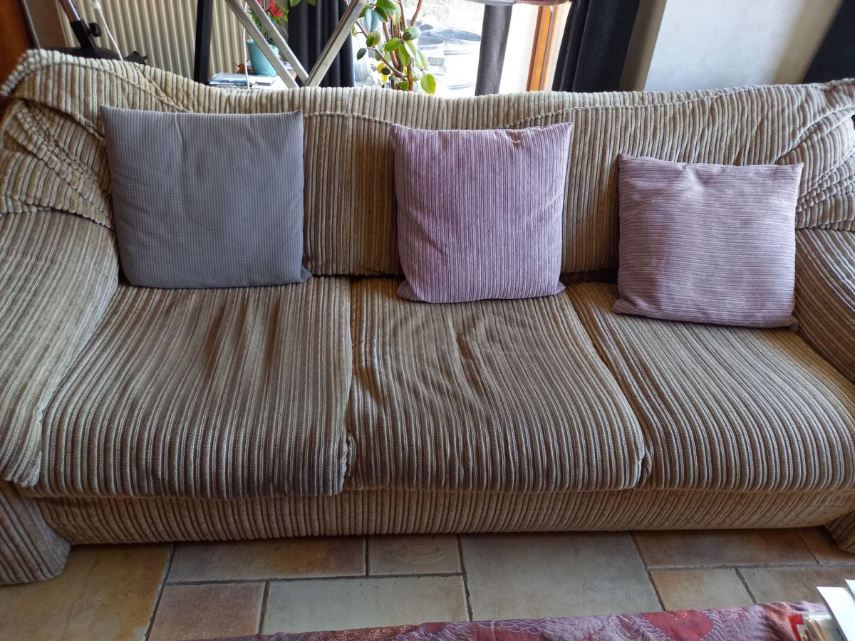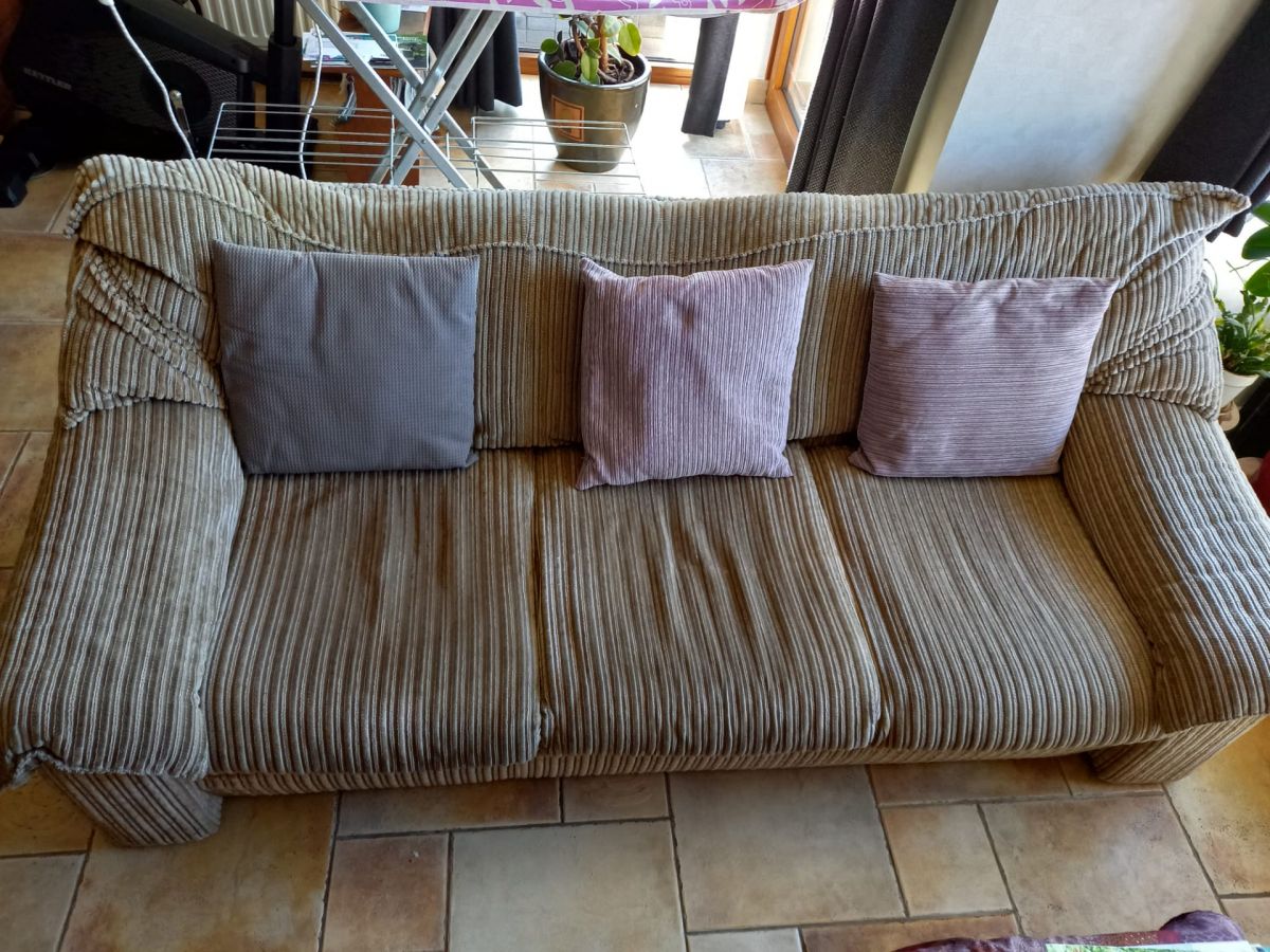 avec larges accoudoirs, confortable et en bon état, longueur : 2 m ; largeur : 90 cm ; profondeur assise : 60 cm, matelas neuf, jamais utilisé,