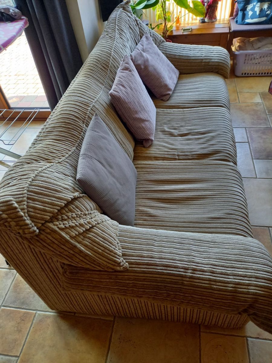 canapé-lit 3 assises, tissus velours côtelé beige,
