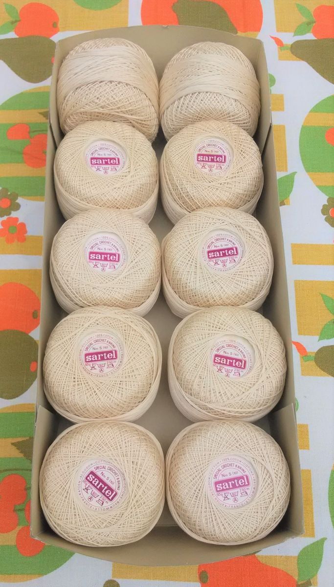 Lot de 10 cotons à crocheter dans sa boite d'origine (10 x 50 mètres)