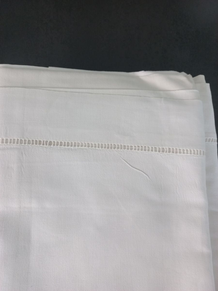 4 draps plats anciens. 1 brodé et 3 festonnés. Pour lit 2 p