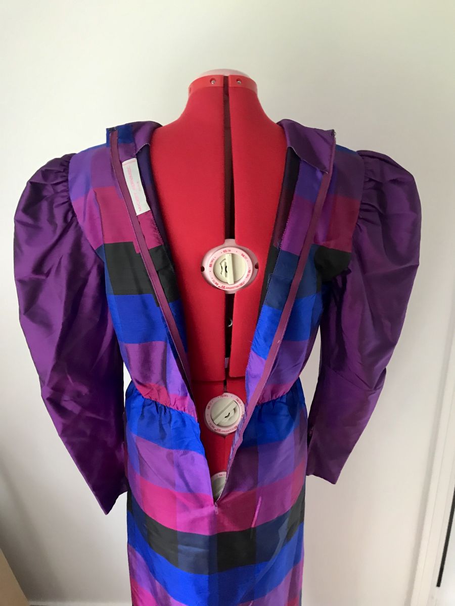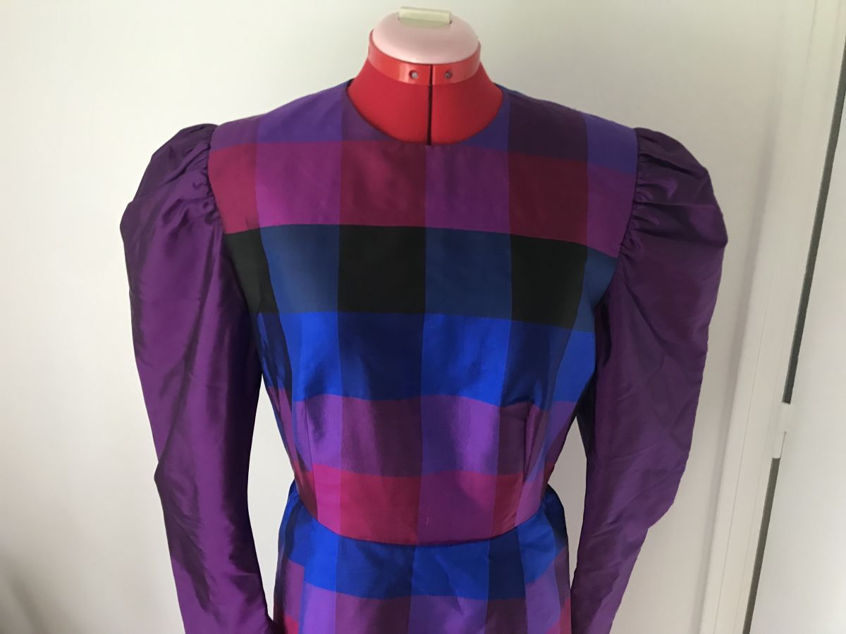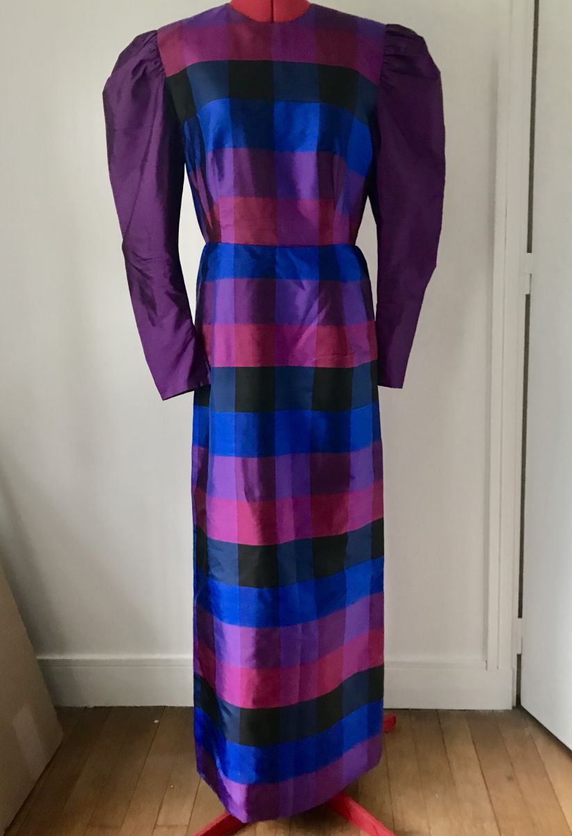 Robe du soir en soie des années 70 avec épaulettes , doublée.