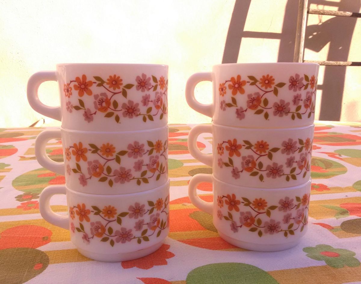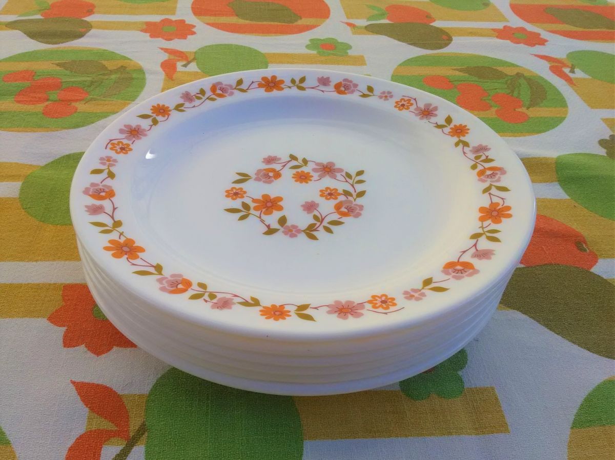 6 assiettes à dessert + 6 tasses à café (Scania Arcopal)
