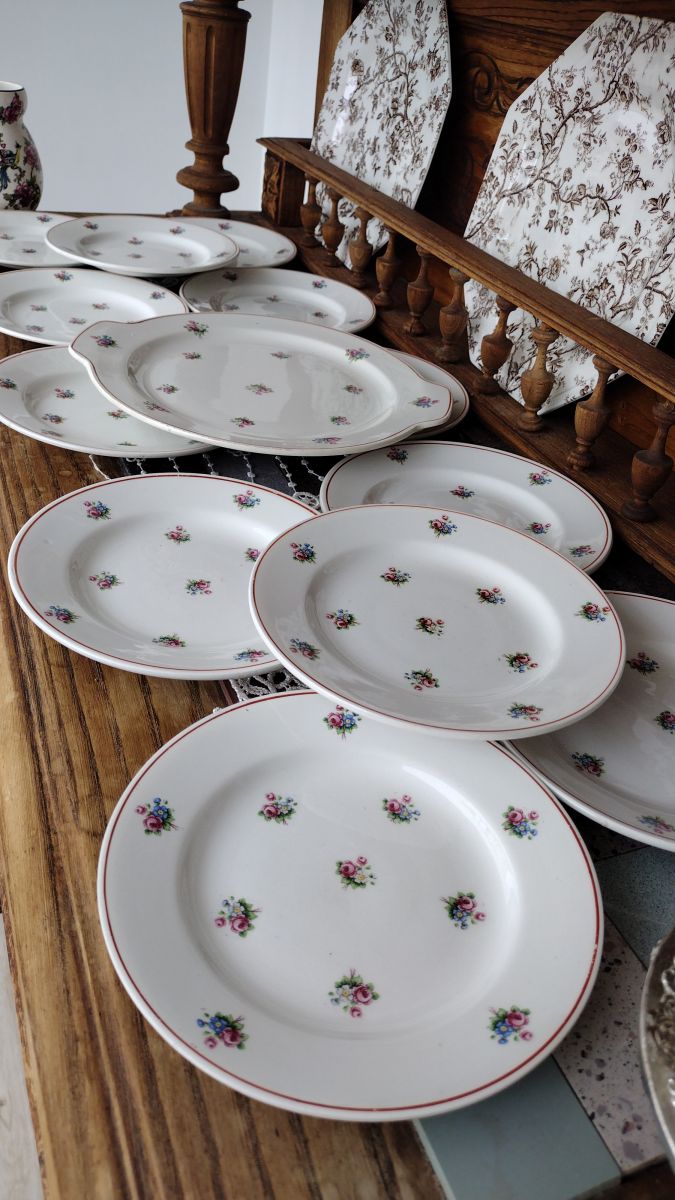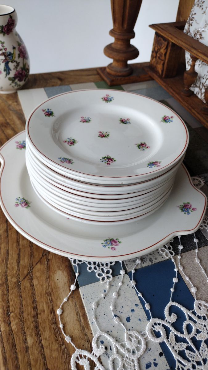 Service à dessert, gâteaux, bon état., Comprenant onze assiettes et un plat de service.