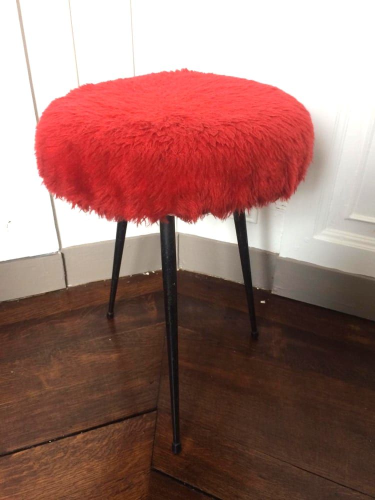 La moumoute est rouge, en bon état, l'assise est confortable. Les pieds aiguilles ont leur couleur d'origine donc présentent des traces d'usures.