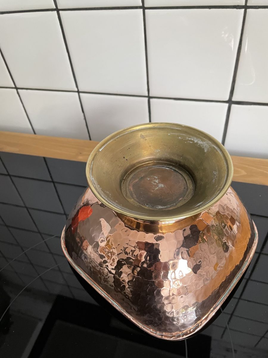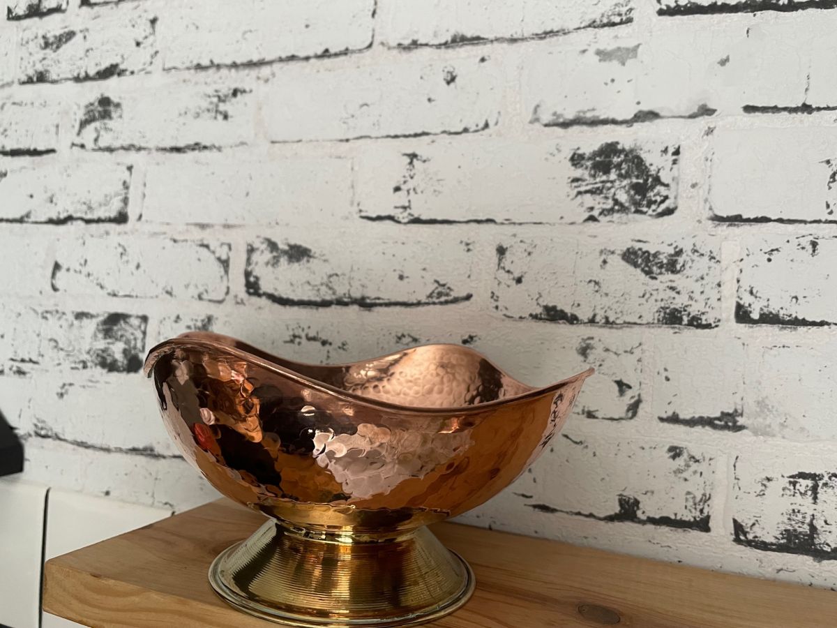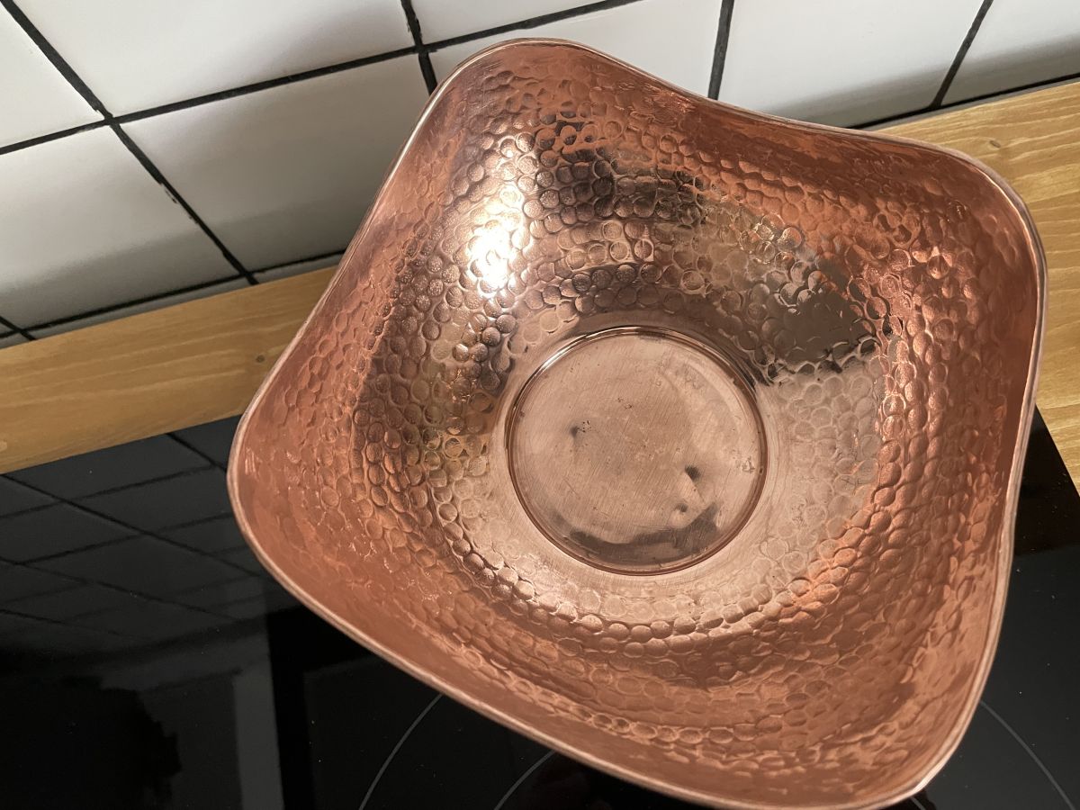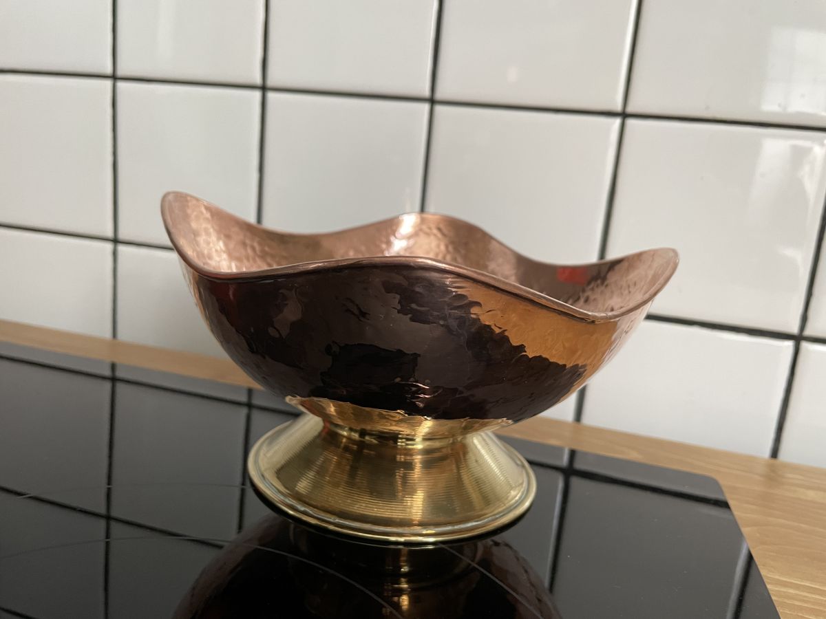 Très belle coupe de fruits en cuivre et pied en laiton