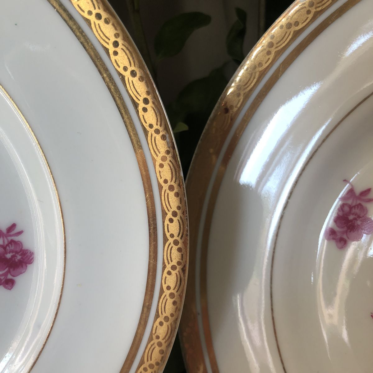 Elles sont en bel état malgré une de assiettes qui présente une légère égrenure visible sur la dernière photo.