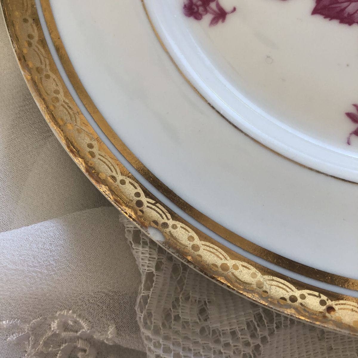 3 anciennes assiettes à dessert en porcelaine de Limoges.