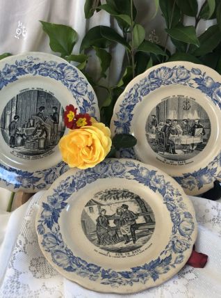 Lot de 3 assiettes parlantes Médaille d'or HB Choisi-le-Roi, sur le thème "Comment manger à Paris"