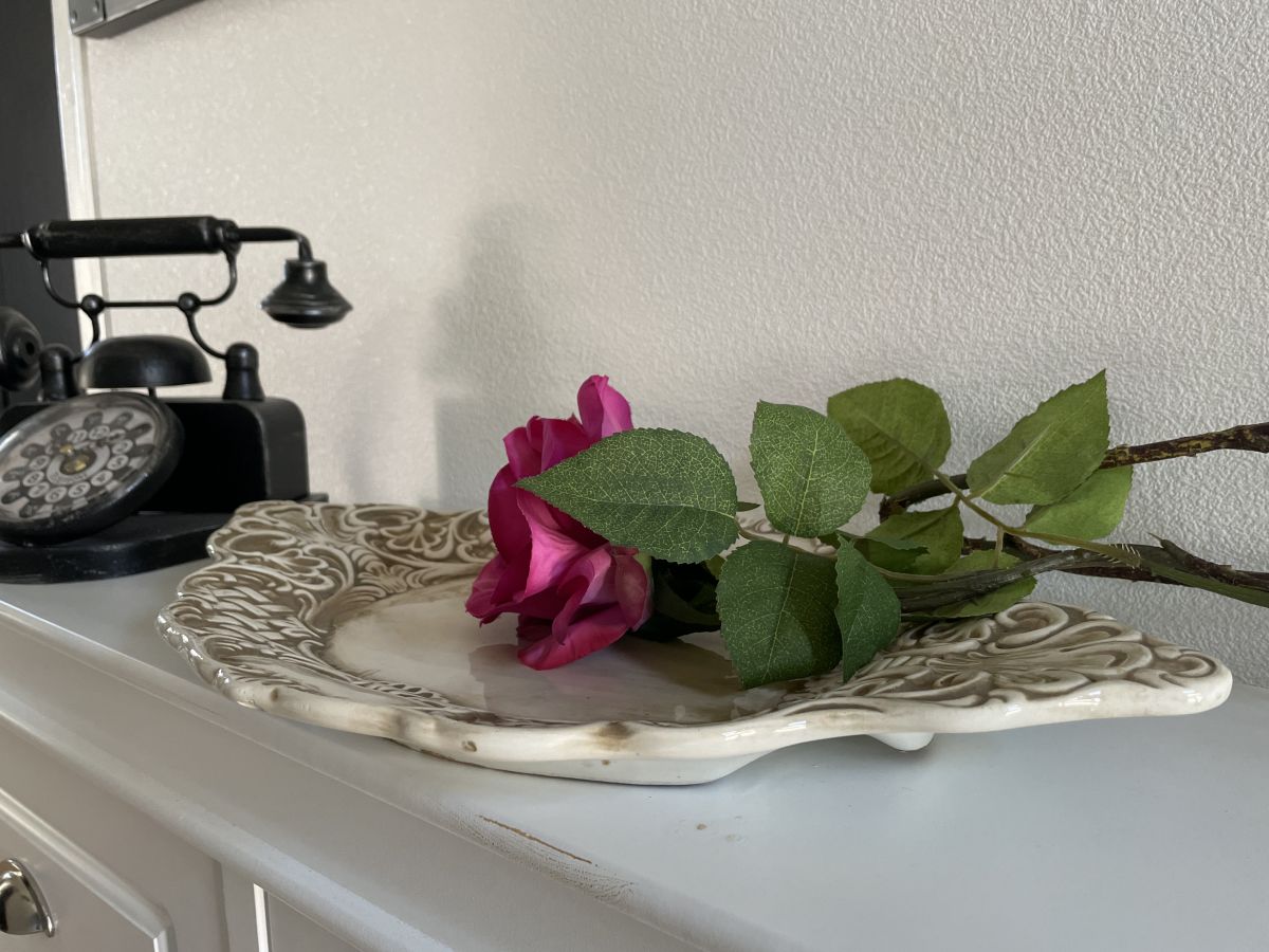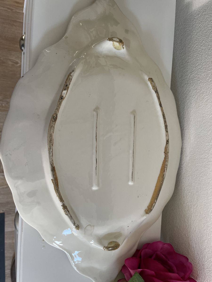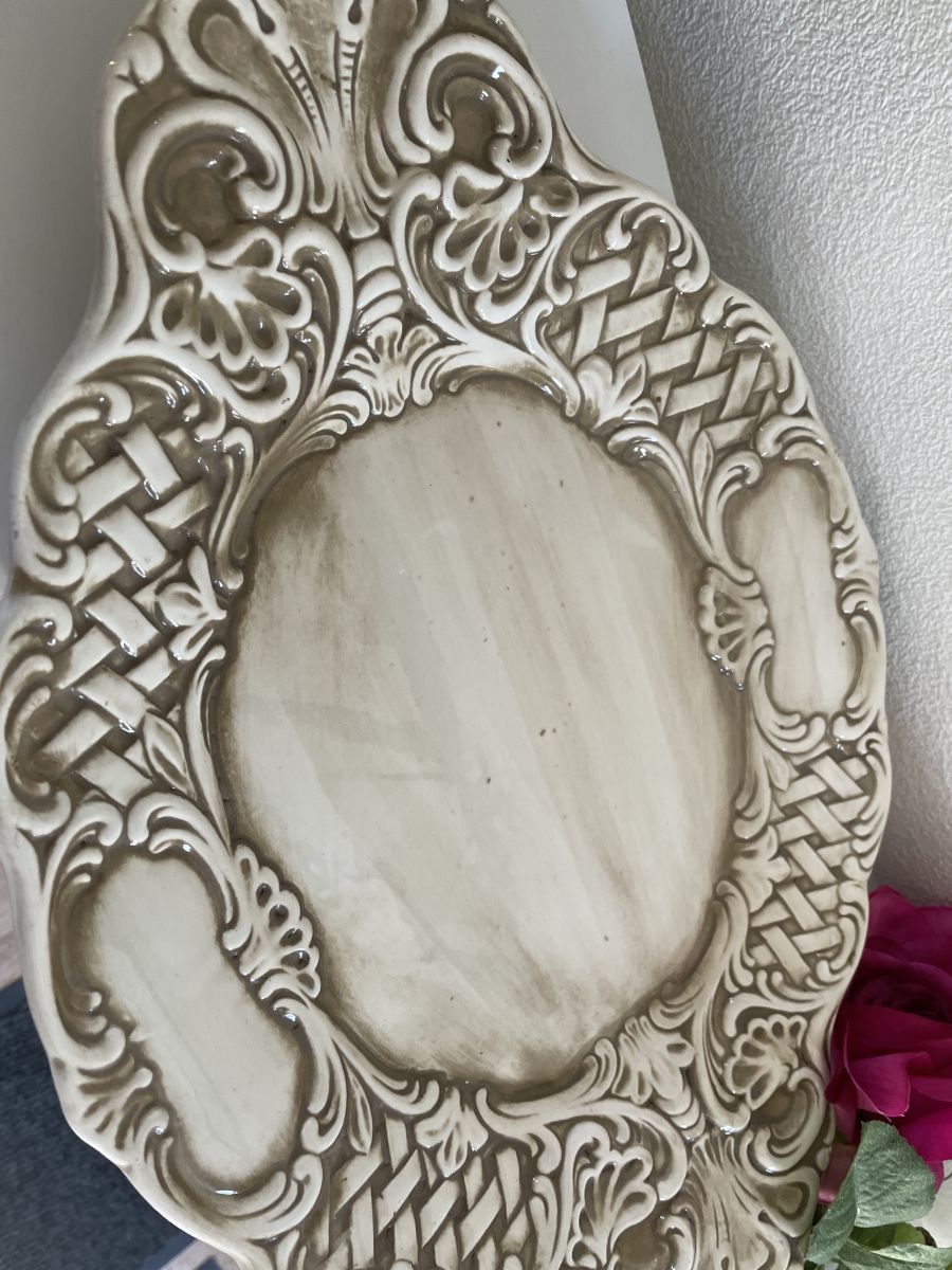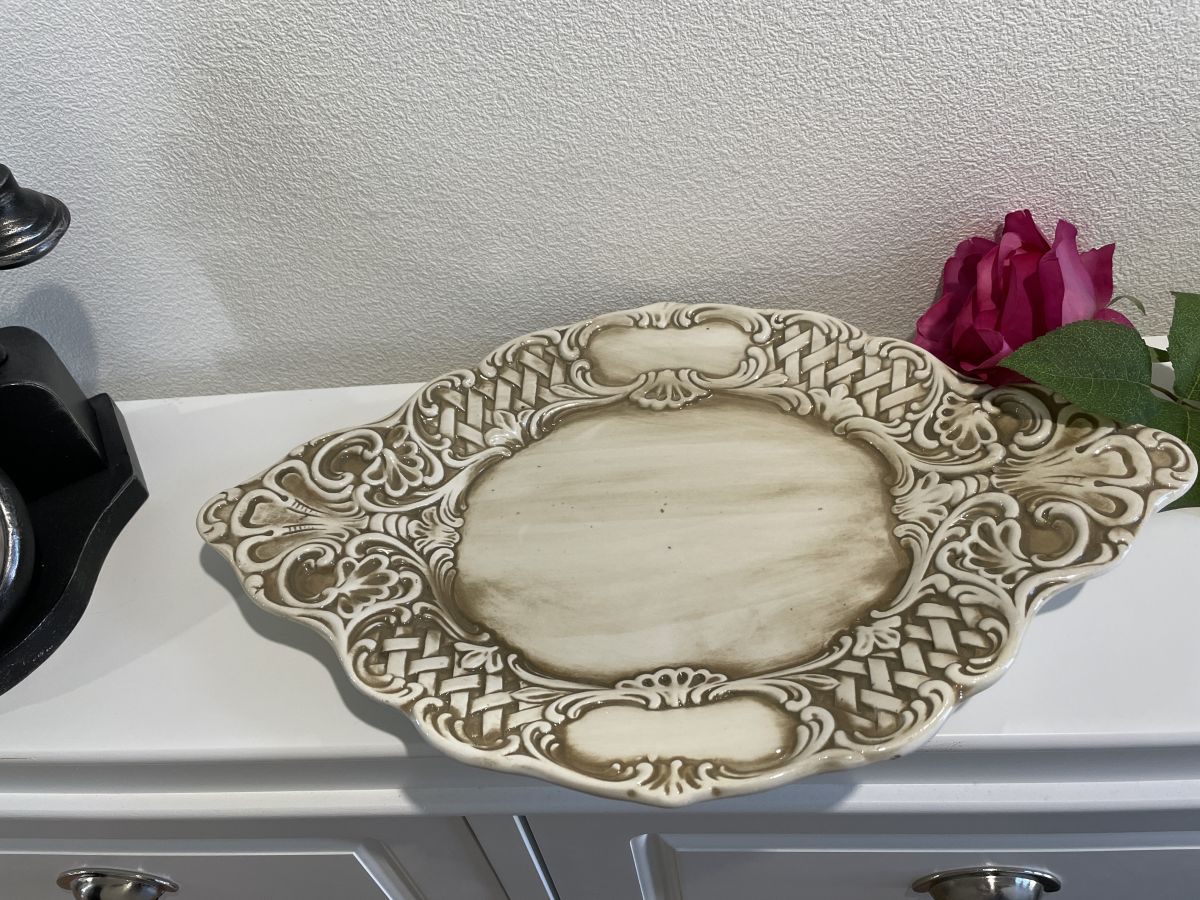 Très beau plat en faïence dans les tons crème avec de splendides motifs en reliefs