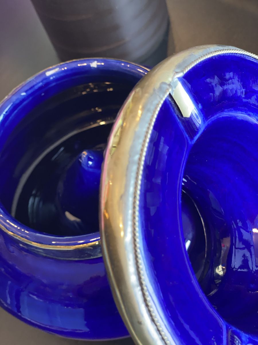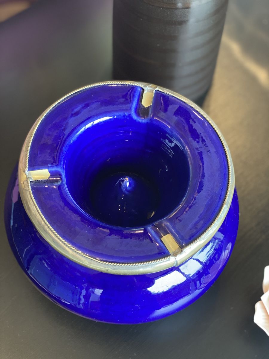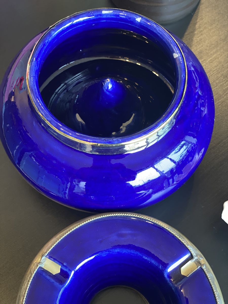 Très joli cendrier bleu profond (attention le bleu est un peu + foncé que sur les photos)