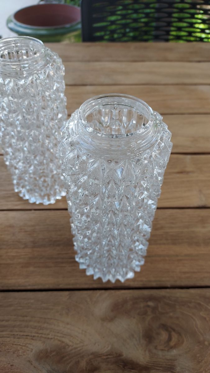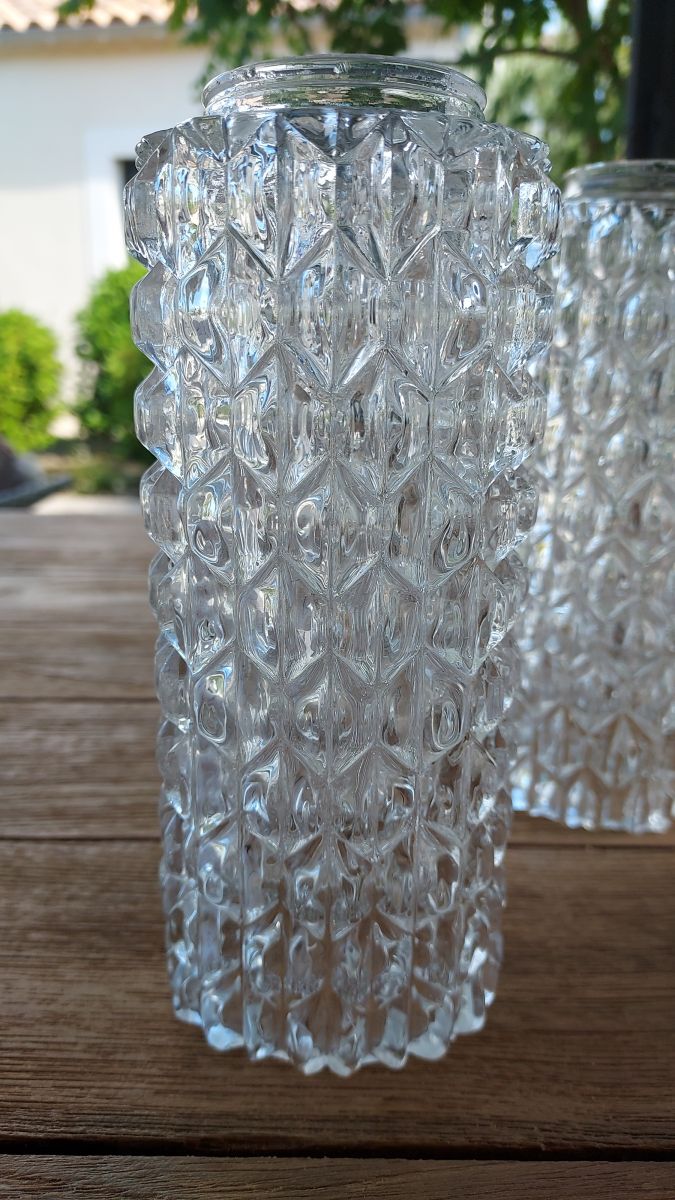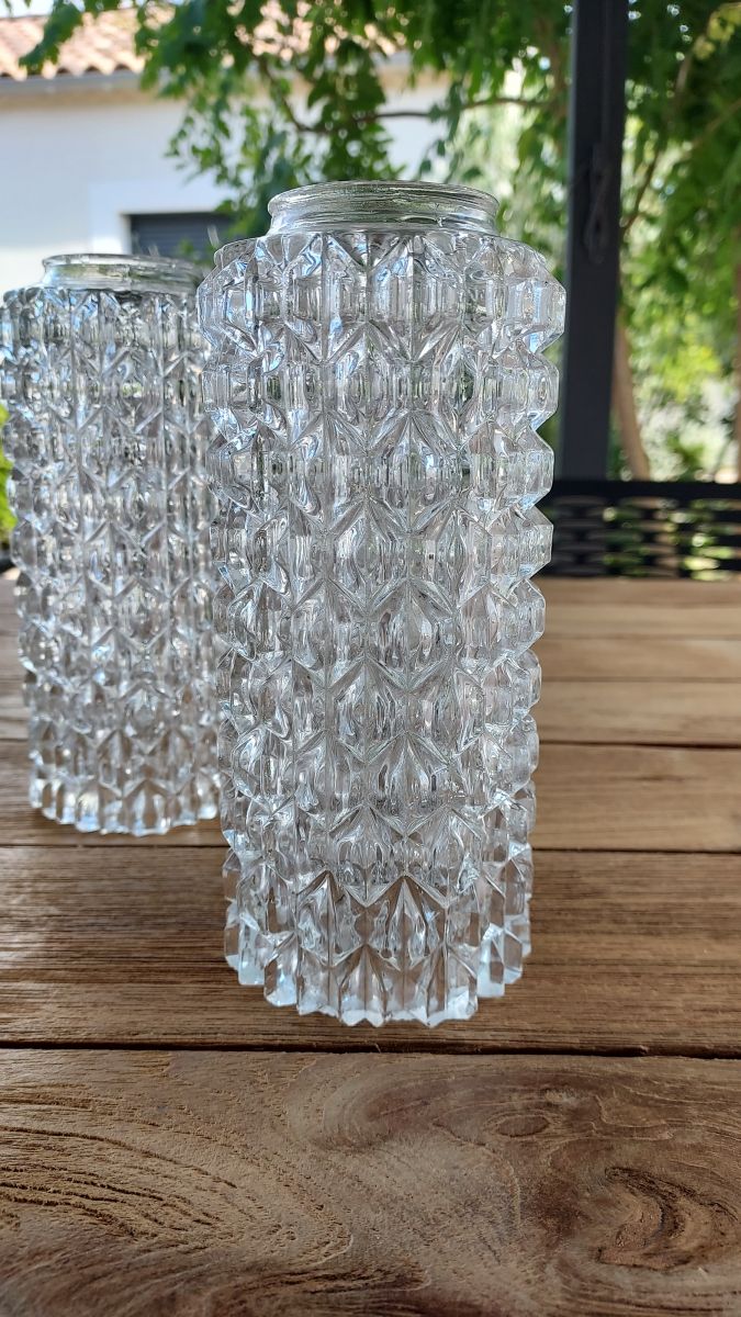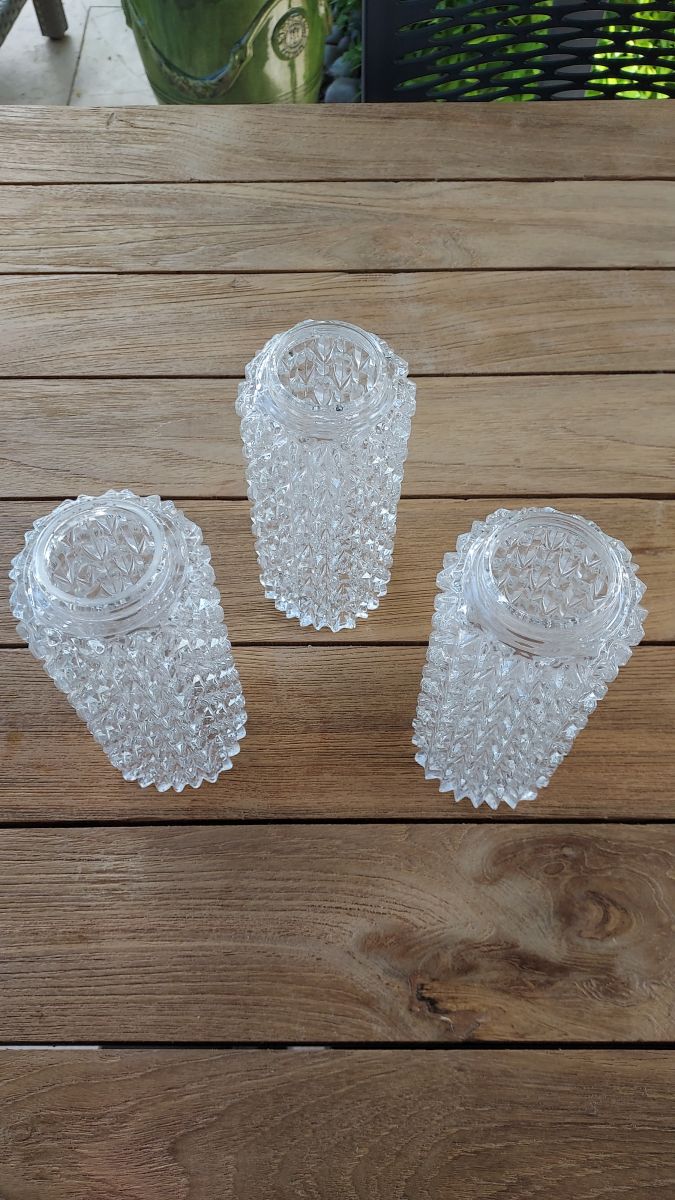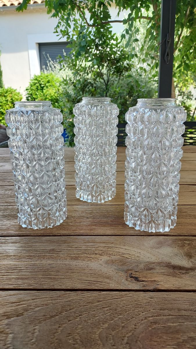 Trio de tulipes en verre travaillé transparent. Elles sont en parfait état.
