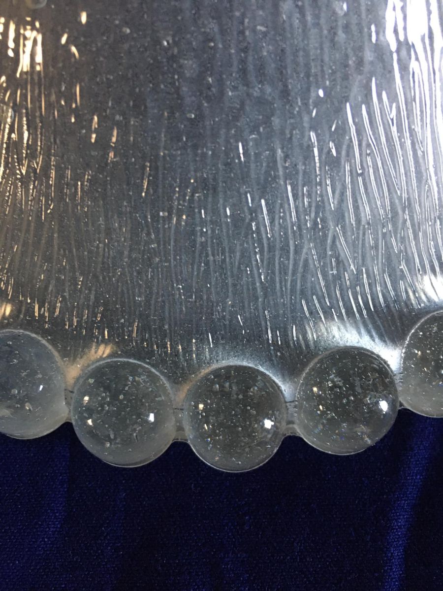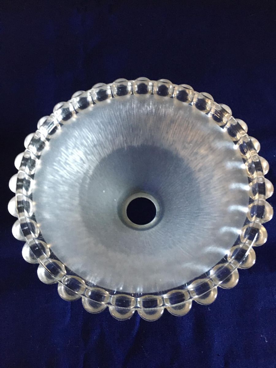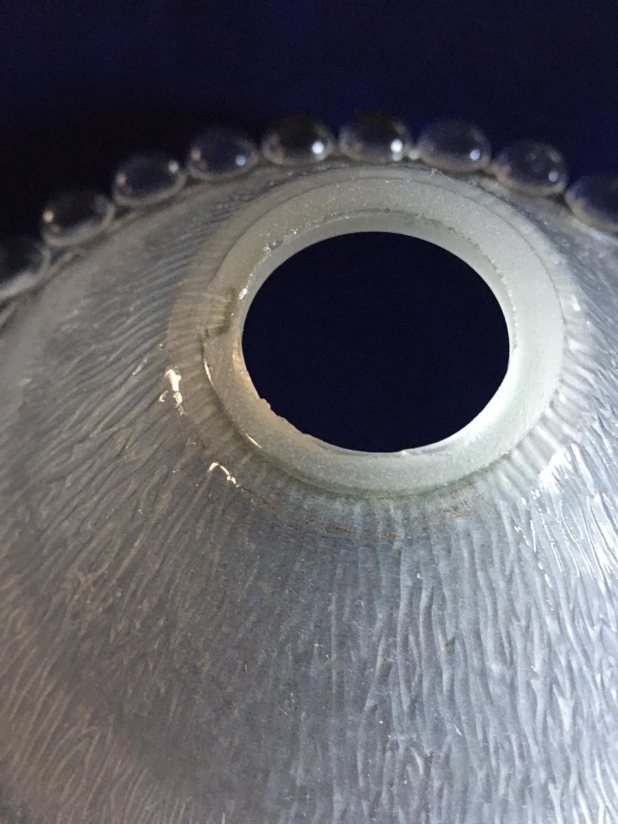 Abat-jour en verre épais et bord perlé.