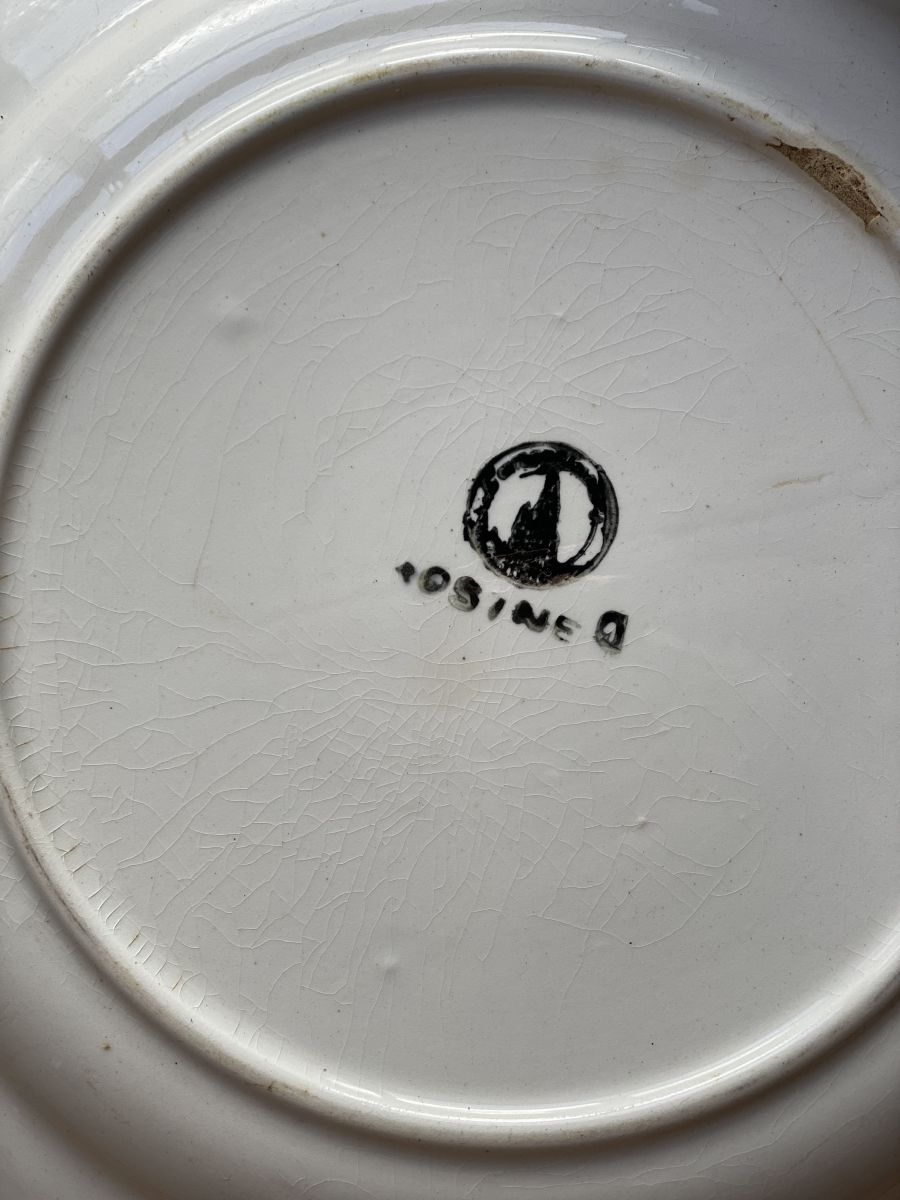 France antique 1932, de la faïence l’amandinoise Saint amand de modèle Rosine. Les deux assiettes sont pour un service dans la creuse je vois bien une bonne salade de pomme de terre et d’haricots verts. Sur l'assiette plate un gâteau, comme une tarte sera extrêmement chic.