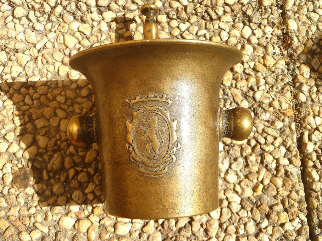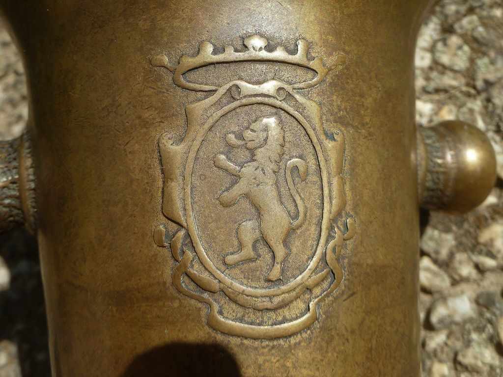 d'un lion et surmonté d'une couronne. Avec un pilon assorti.