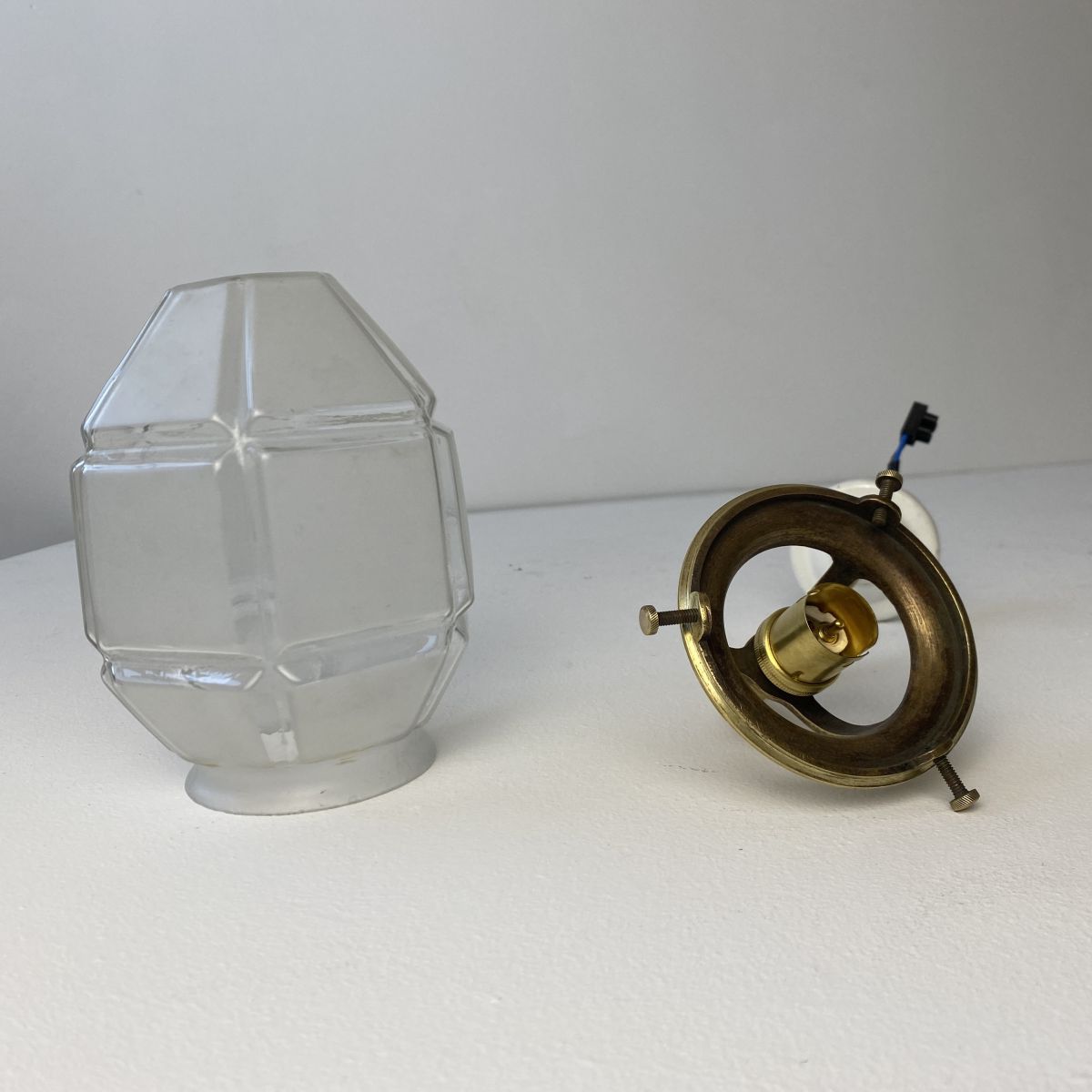 Ancienne applique murale Art-déco avec son abat-jour en verre sablé. Bel état général sauf les égrenures d’usage sur le rebord de l’abat-jour.