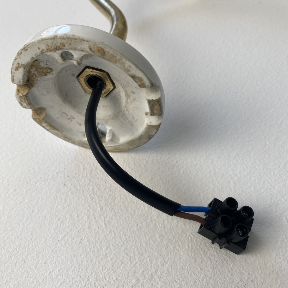 Démontée et nettoyée. Electricité refaite à neuf. Douille a baïonnette (ampoule B22)