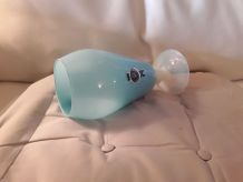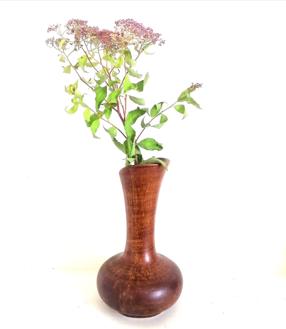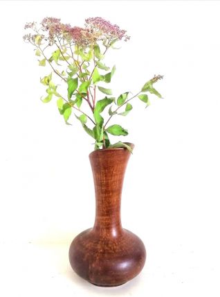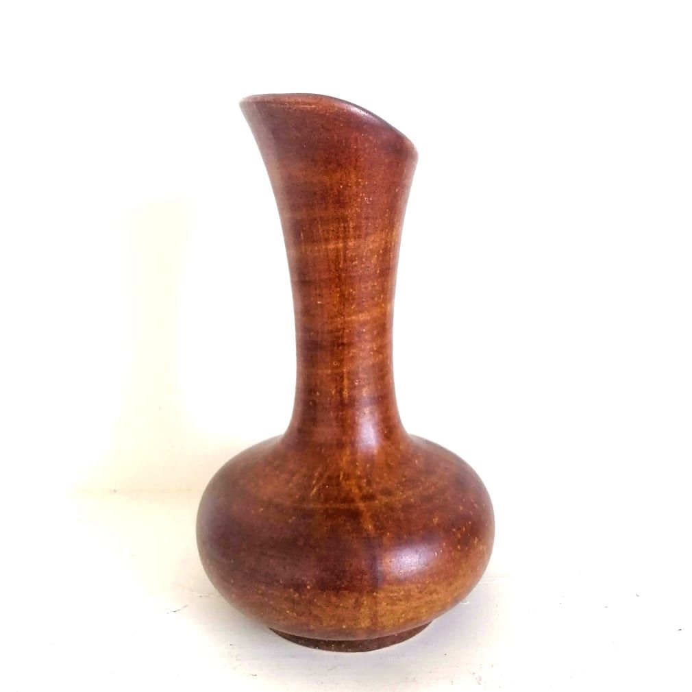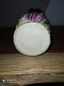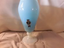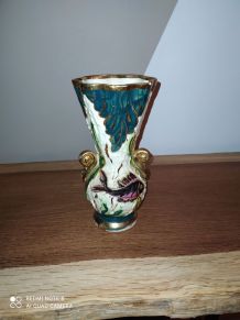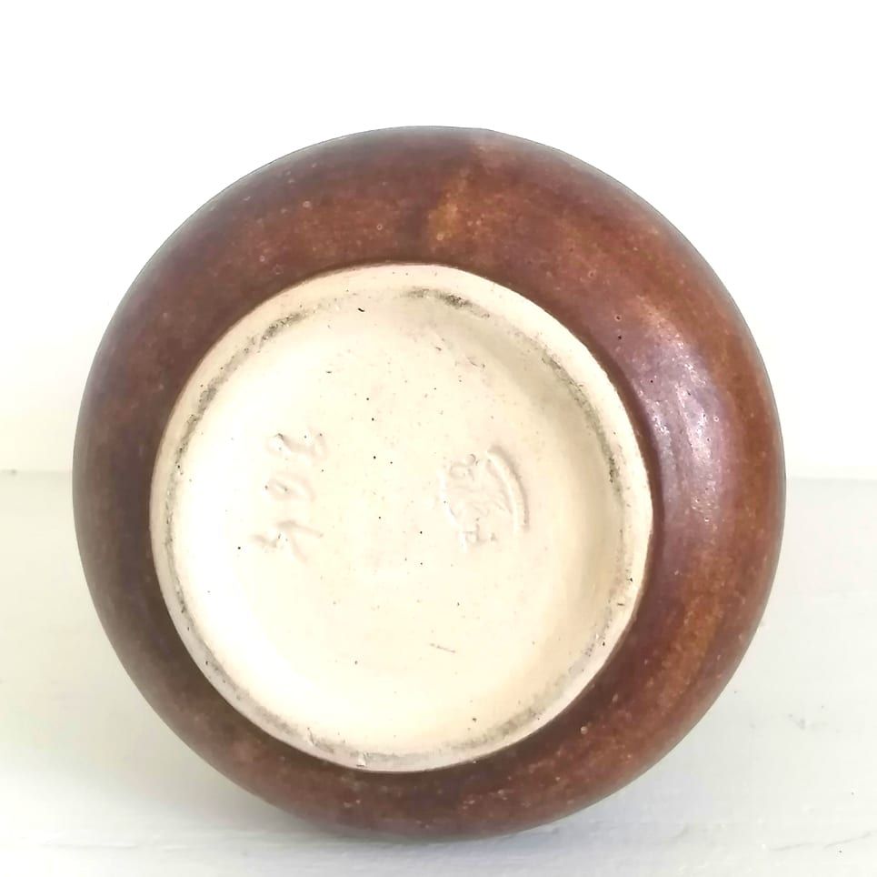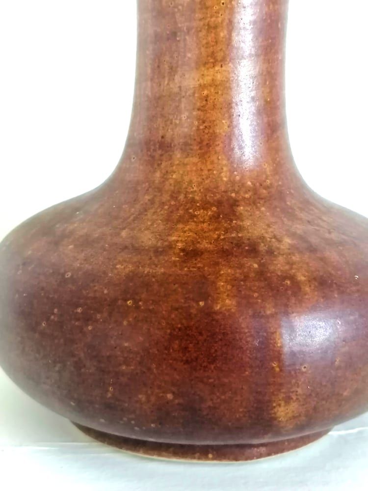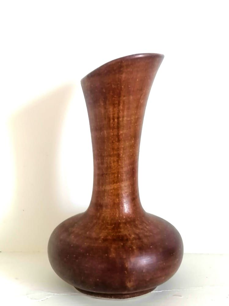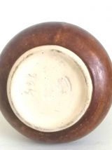 Petit vase pansu au long col asymétrique en faïence de Pierrefonds.