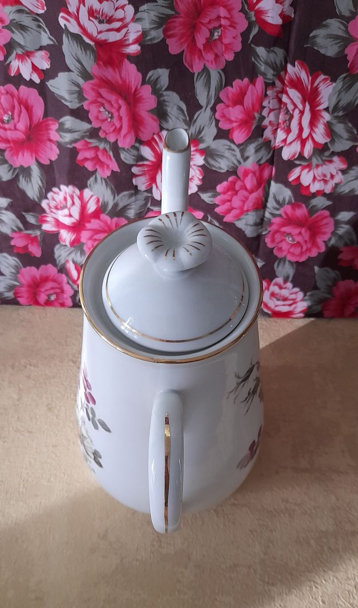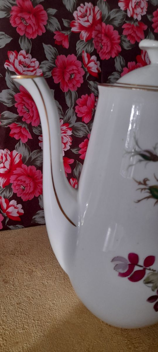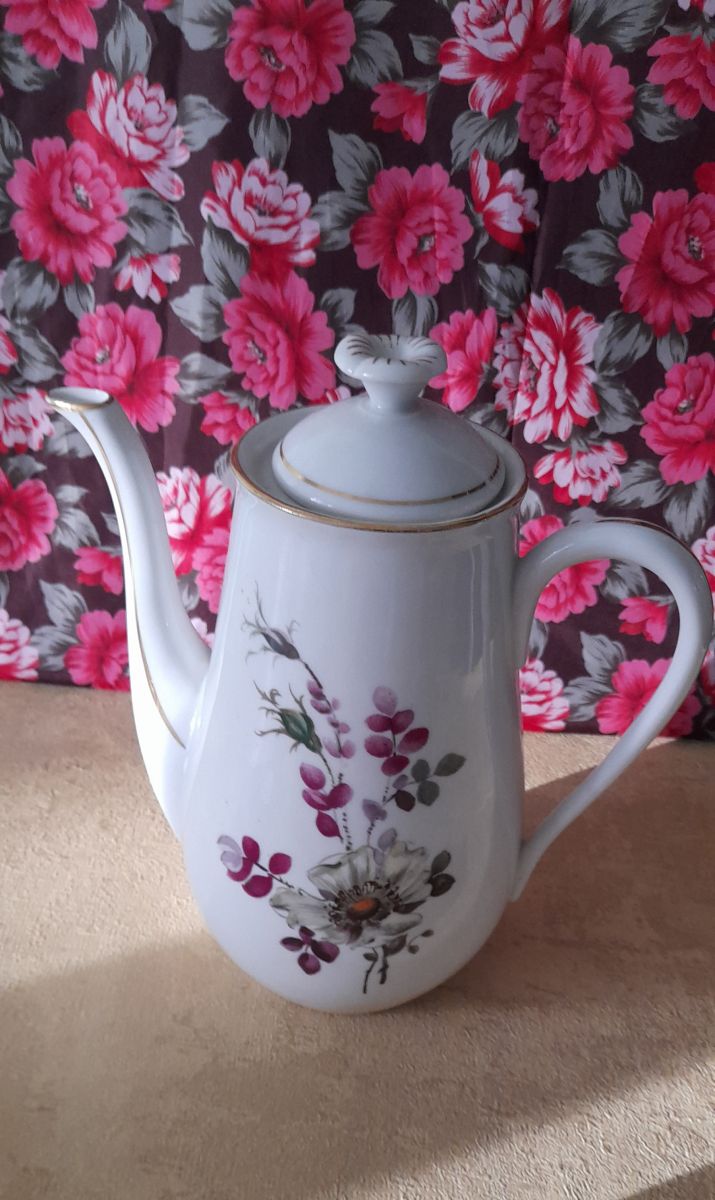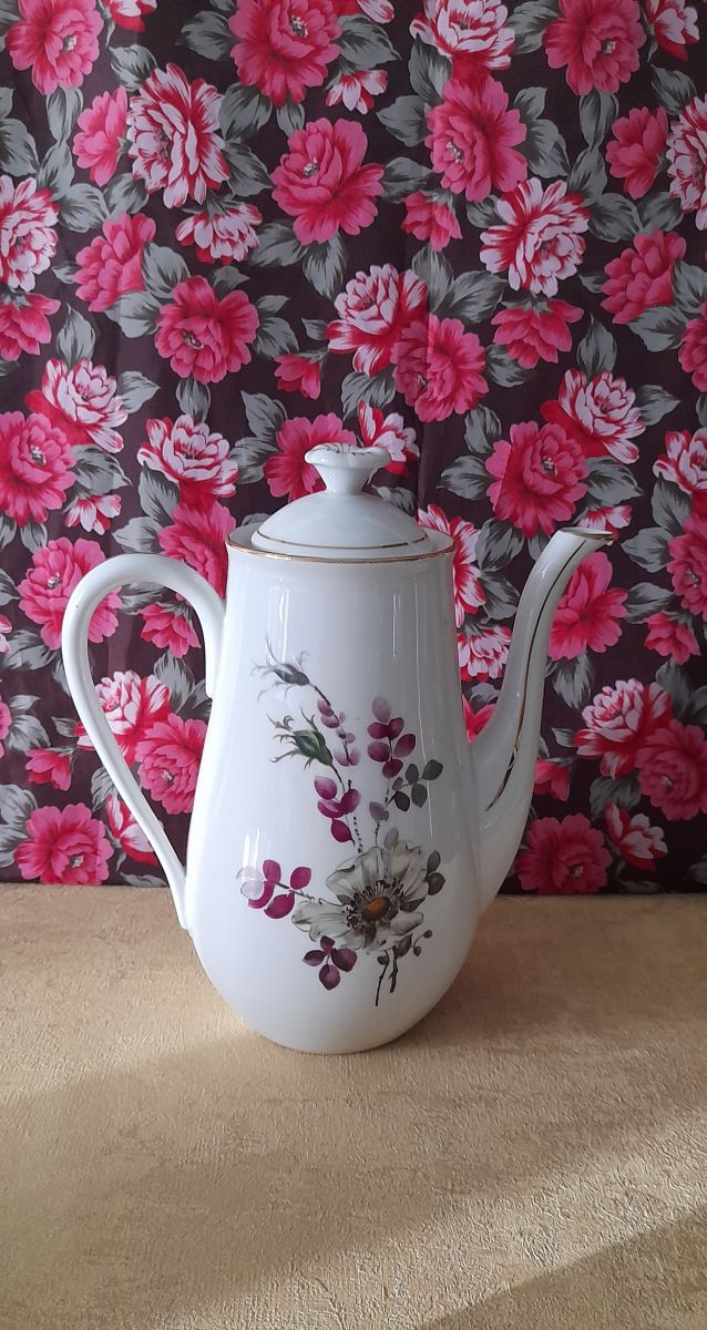 Cafetiere décor floral porcelaine Lourioux Foecy, 1930