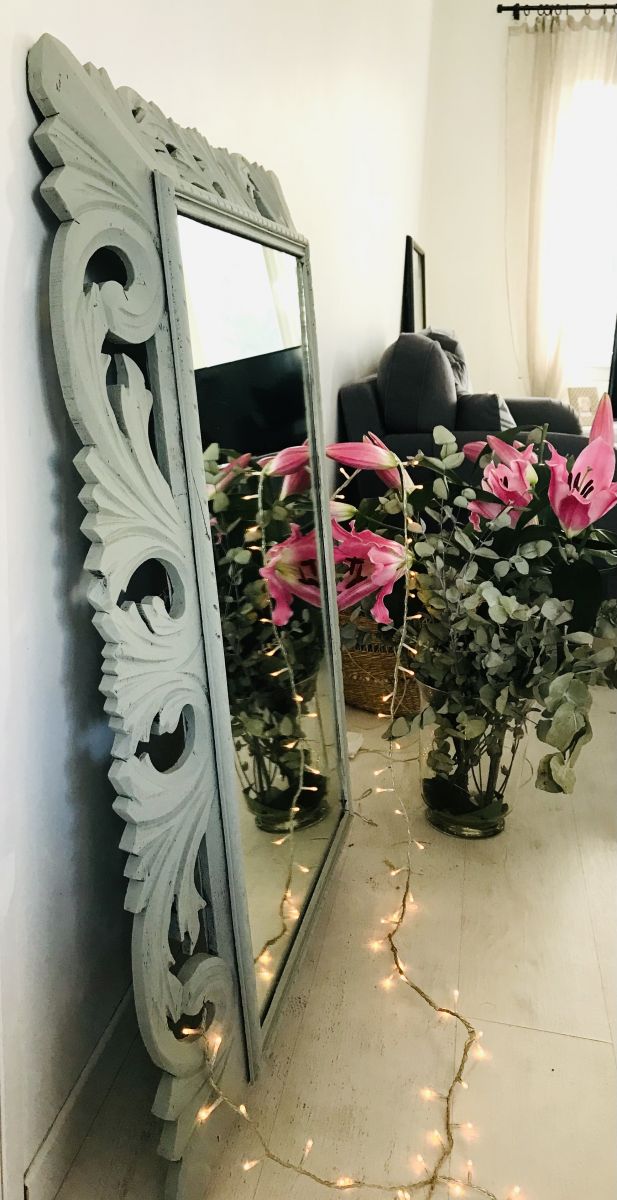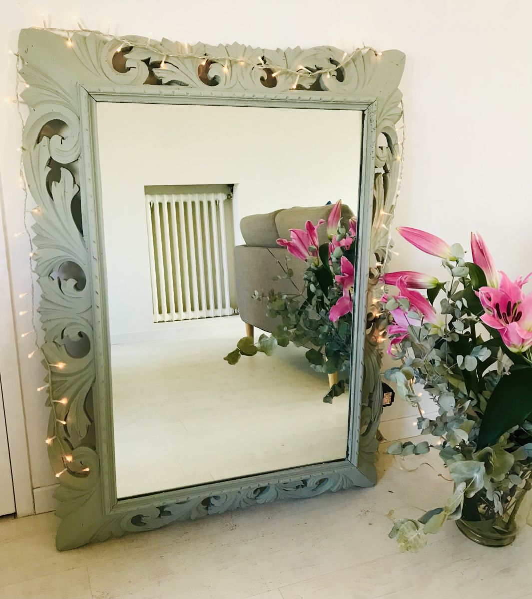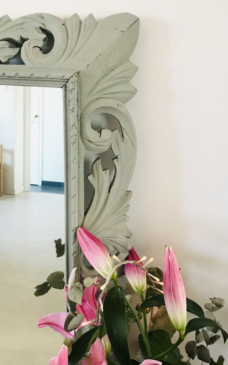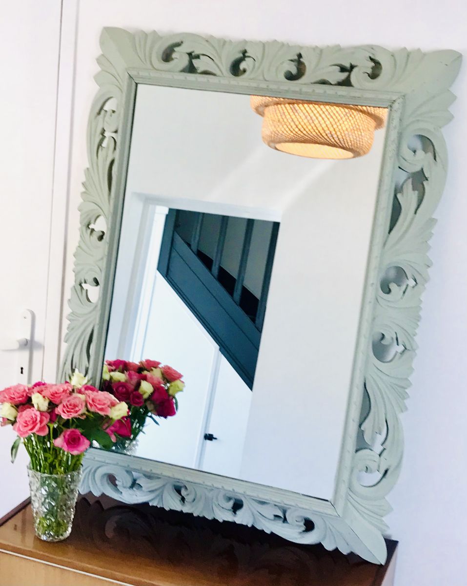 Une nouvelle jeunesse est offerte à ce magnifique miroir en bois sculpté.