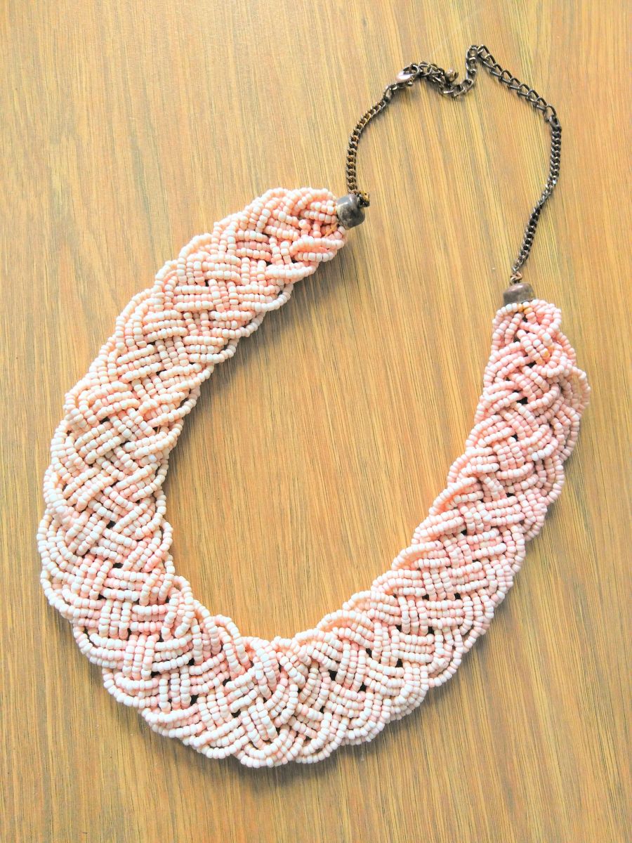 Collier en perles de rocaille rose pâle, pastel