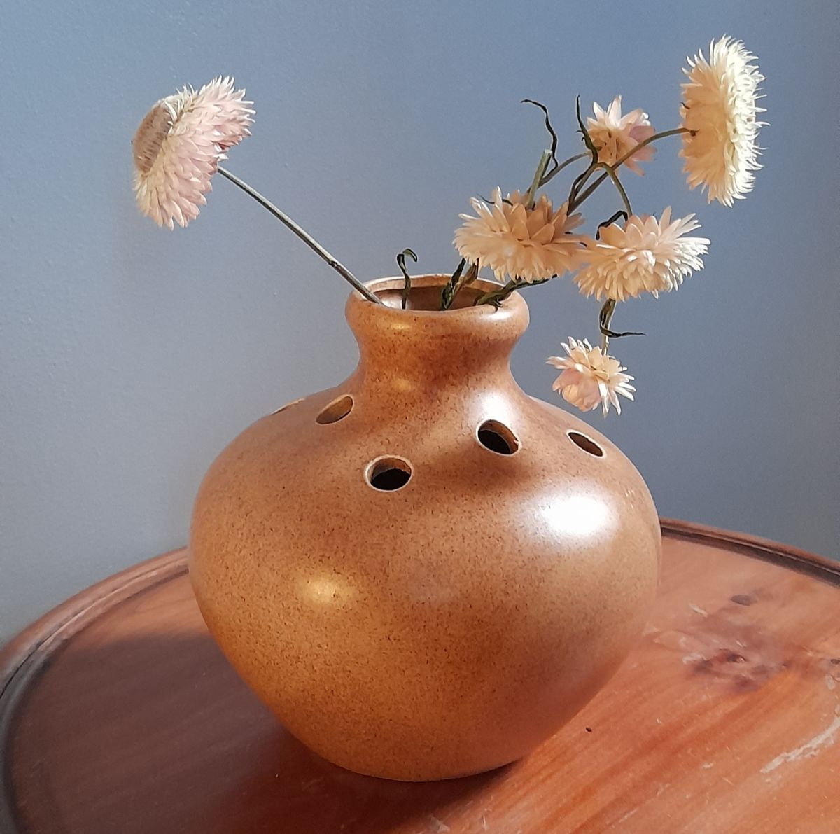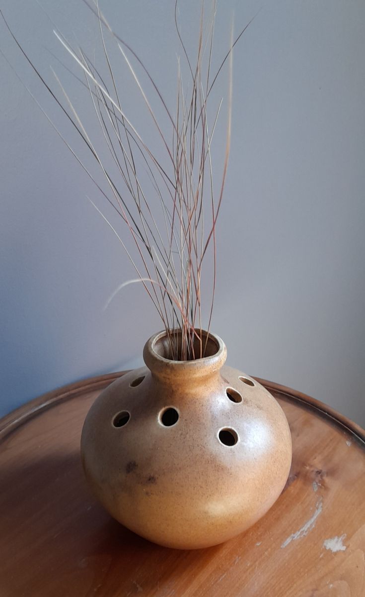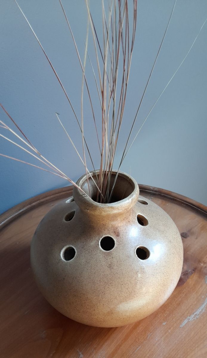Vase pique fleurs en grès 1970, très tendance pour une déco au naturel.