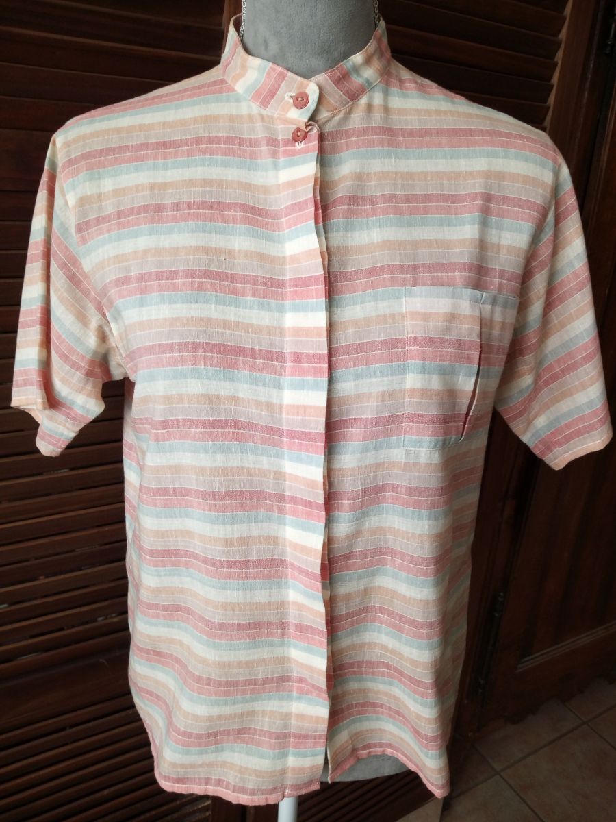 Haut 100% coton à manche courte boutonnage sous patte col tunisien poche poitrine à pli creux annees 80 confectionnée par une professionnelle (ma maman) dans un tissu qualité - comme neuf