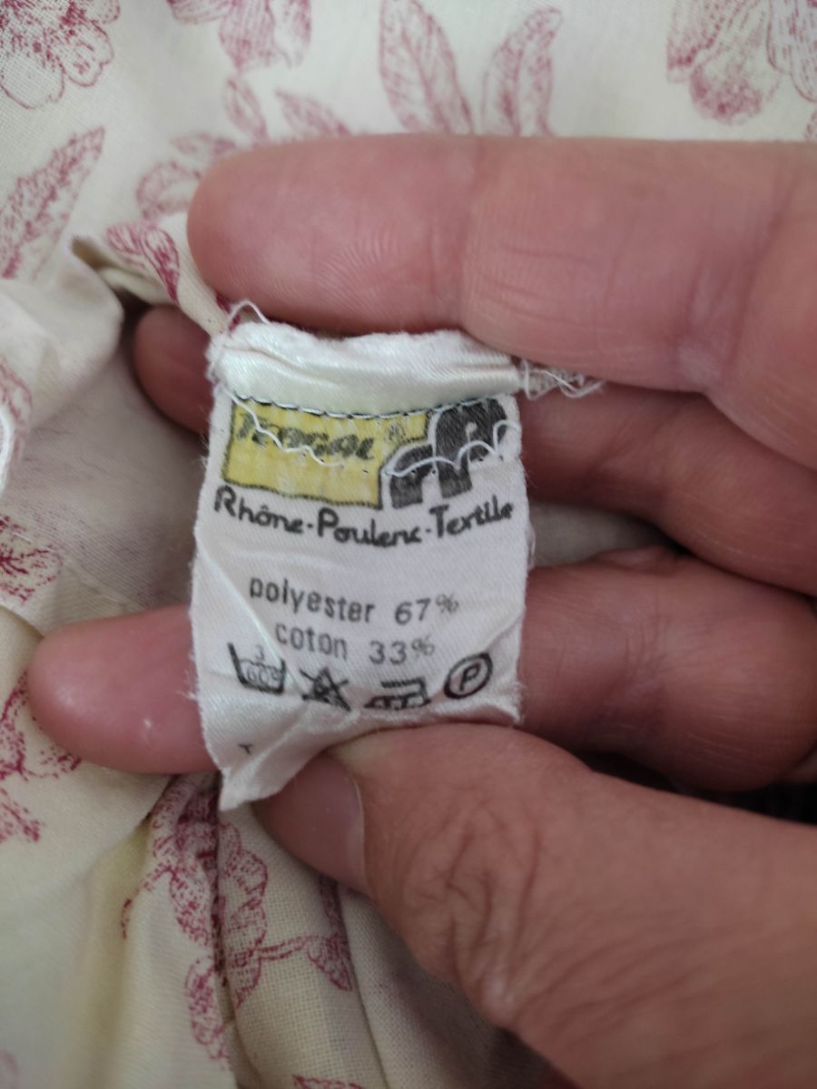 Jolie housse de couette vintage avec des volants . Taille 200x200. Elle est exposée sur un lit de 180 et sera mise en valeur sur un lit plus de 140 .