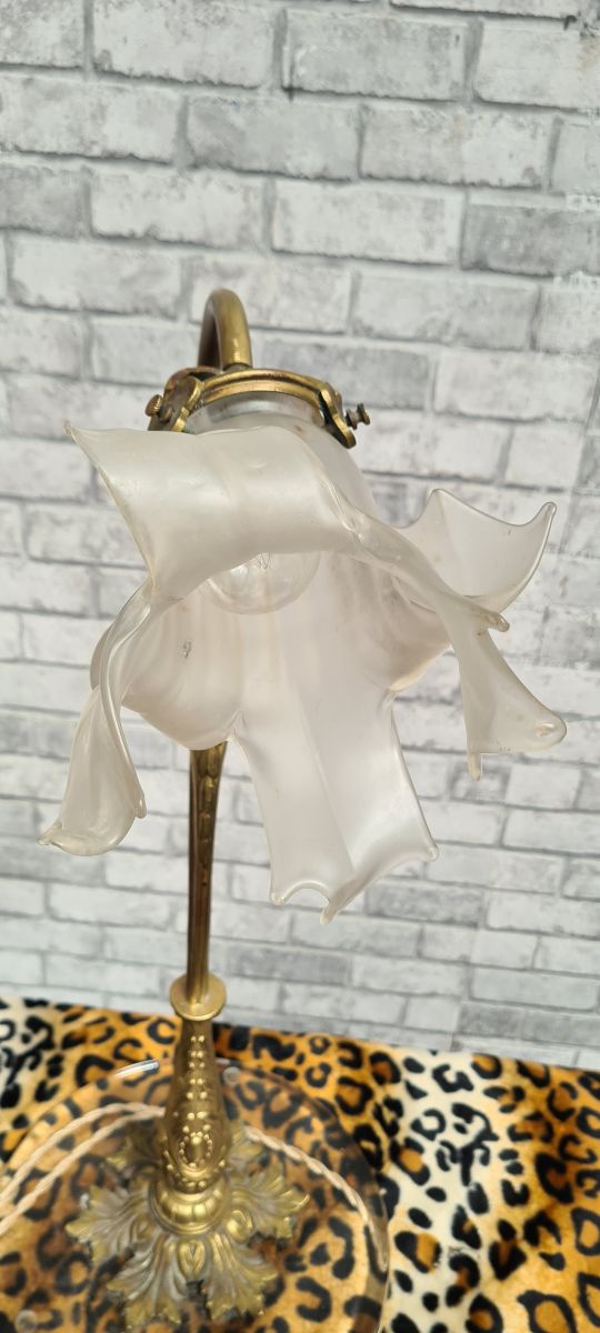grande lampe rocaille bronze et laiton art nouveau tulipe f