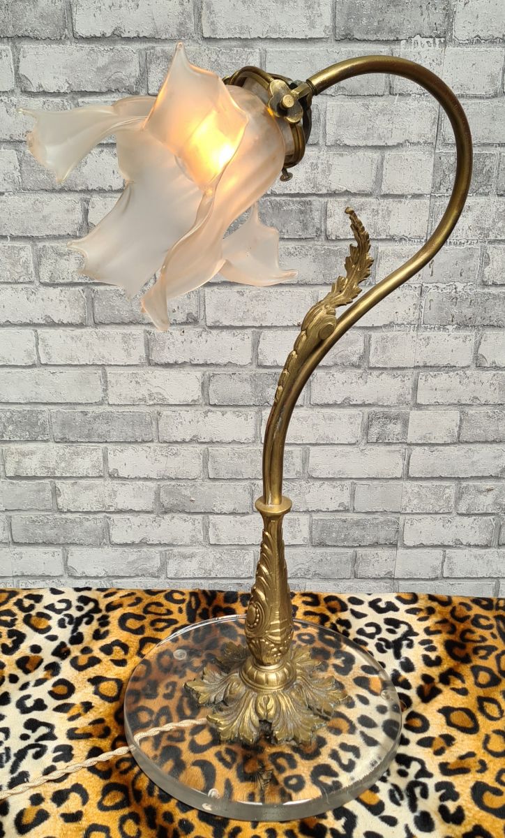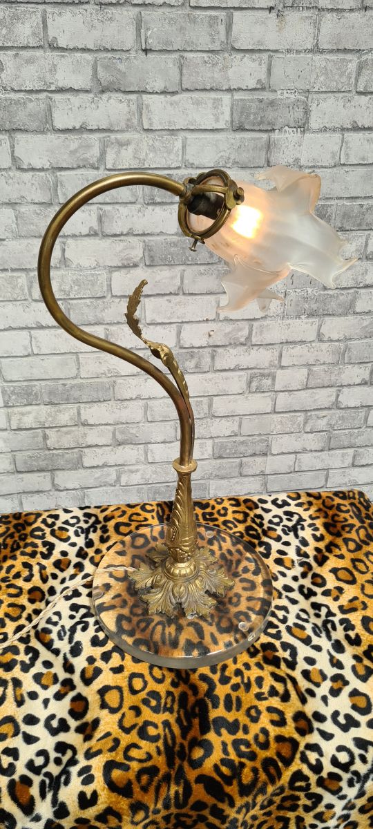 grande lampe rocaille bronze et laiton art nouveau tulipe forme libre