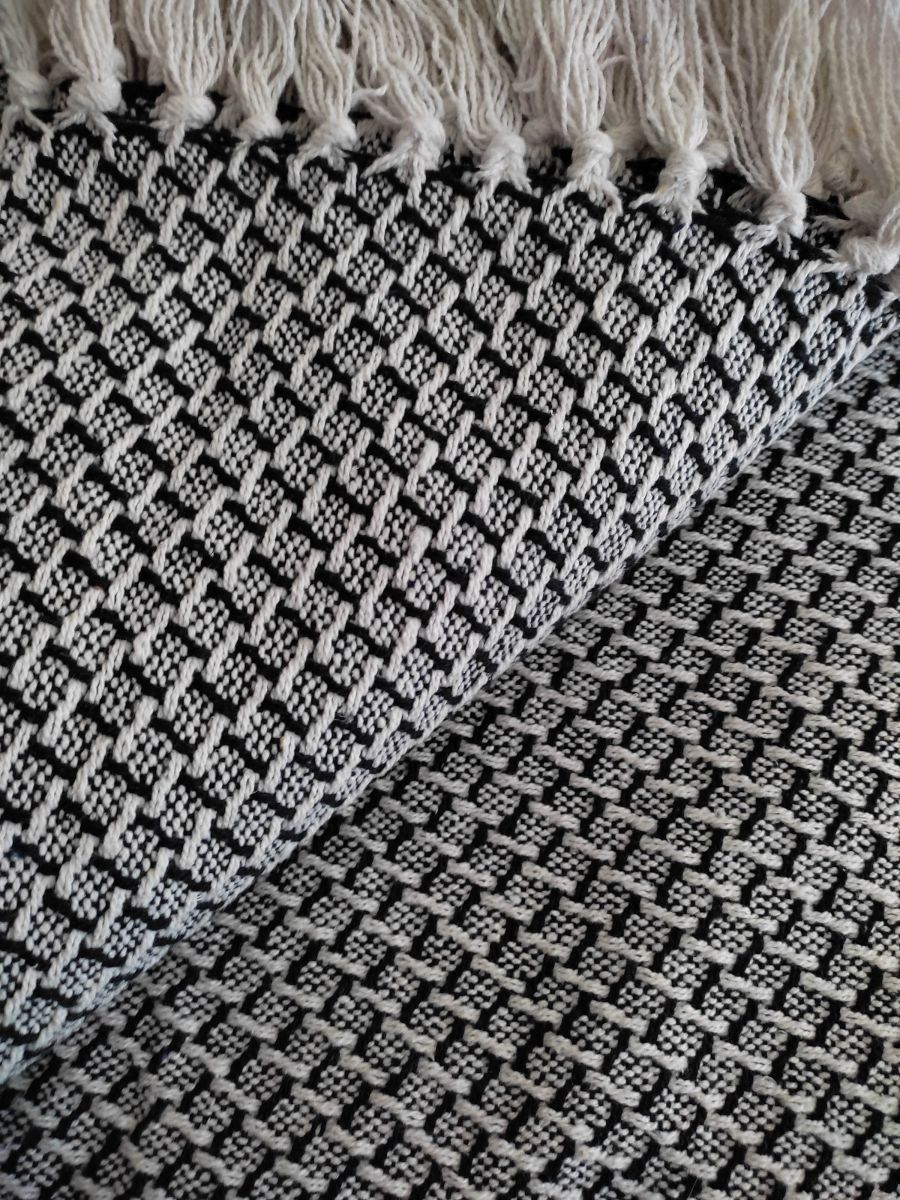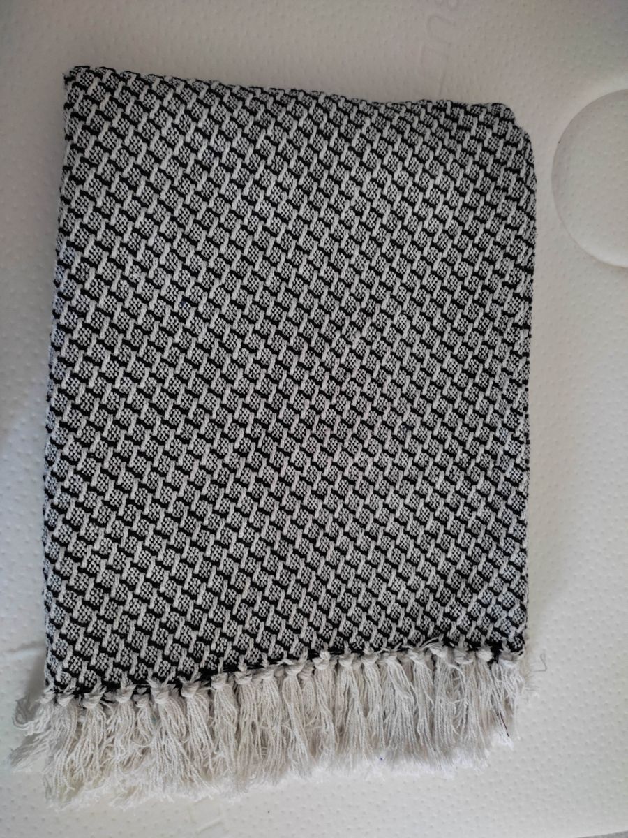 Plaid noir et blanc à pompons.