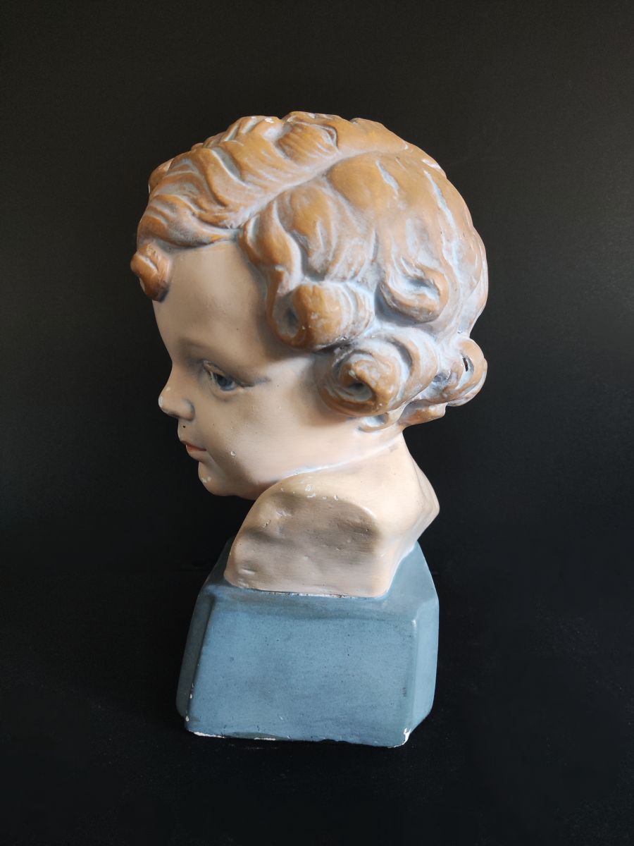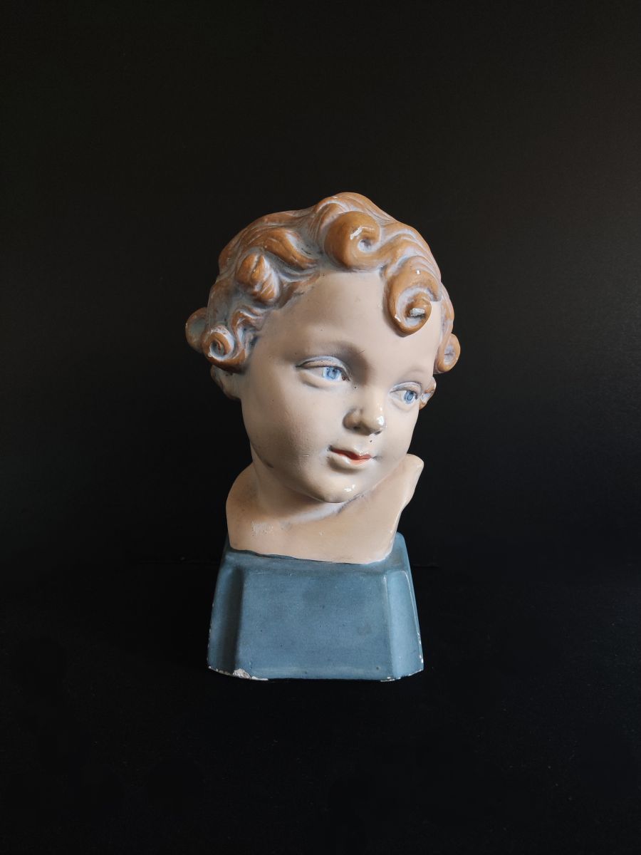 beau petit buste de jeune garçon polychrome en plâtre art déco